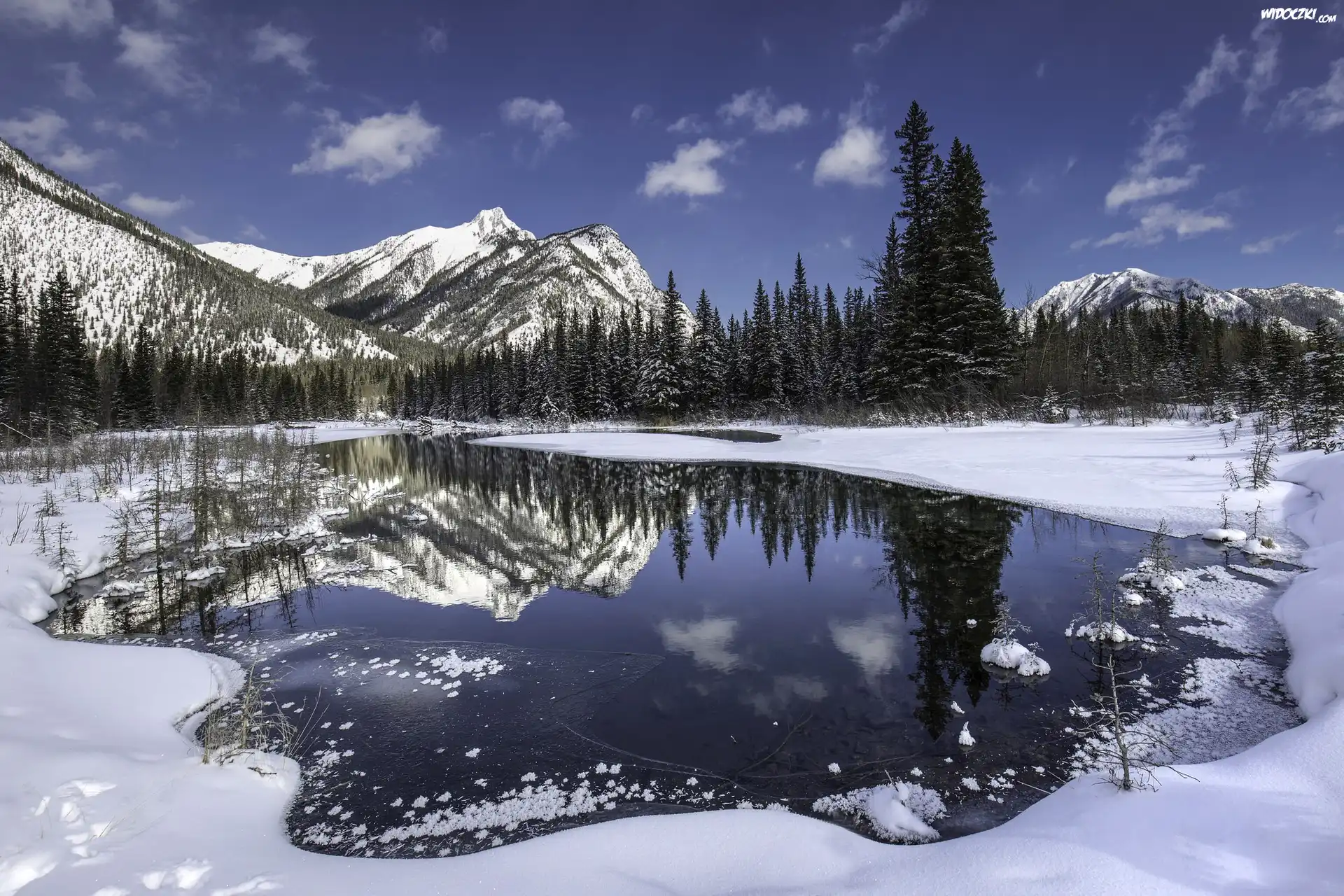 Zima, Góry, Jezioro, Odbicie, Drzewa