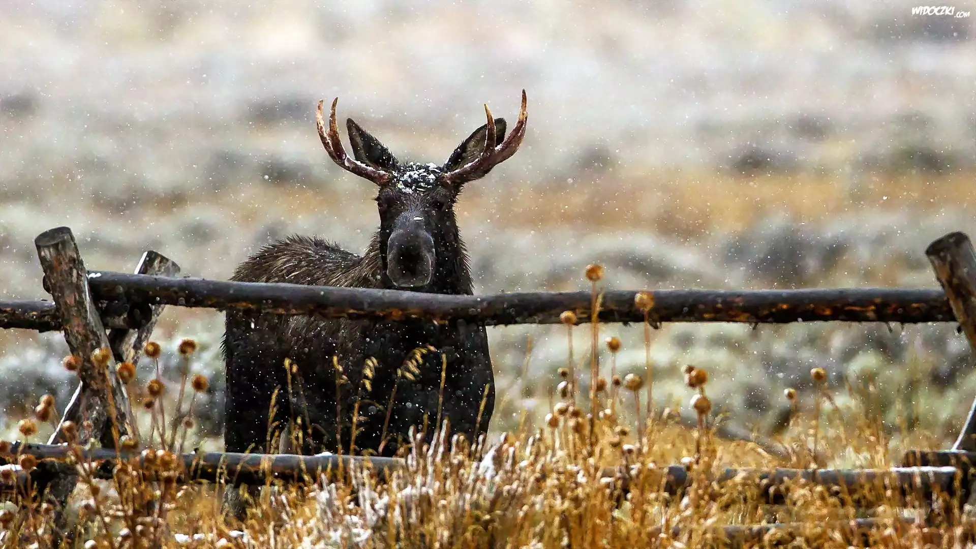Zdjęcia, Zima, Łąka, Ogrodzenie, Łoś