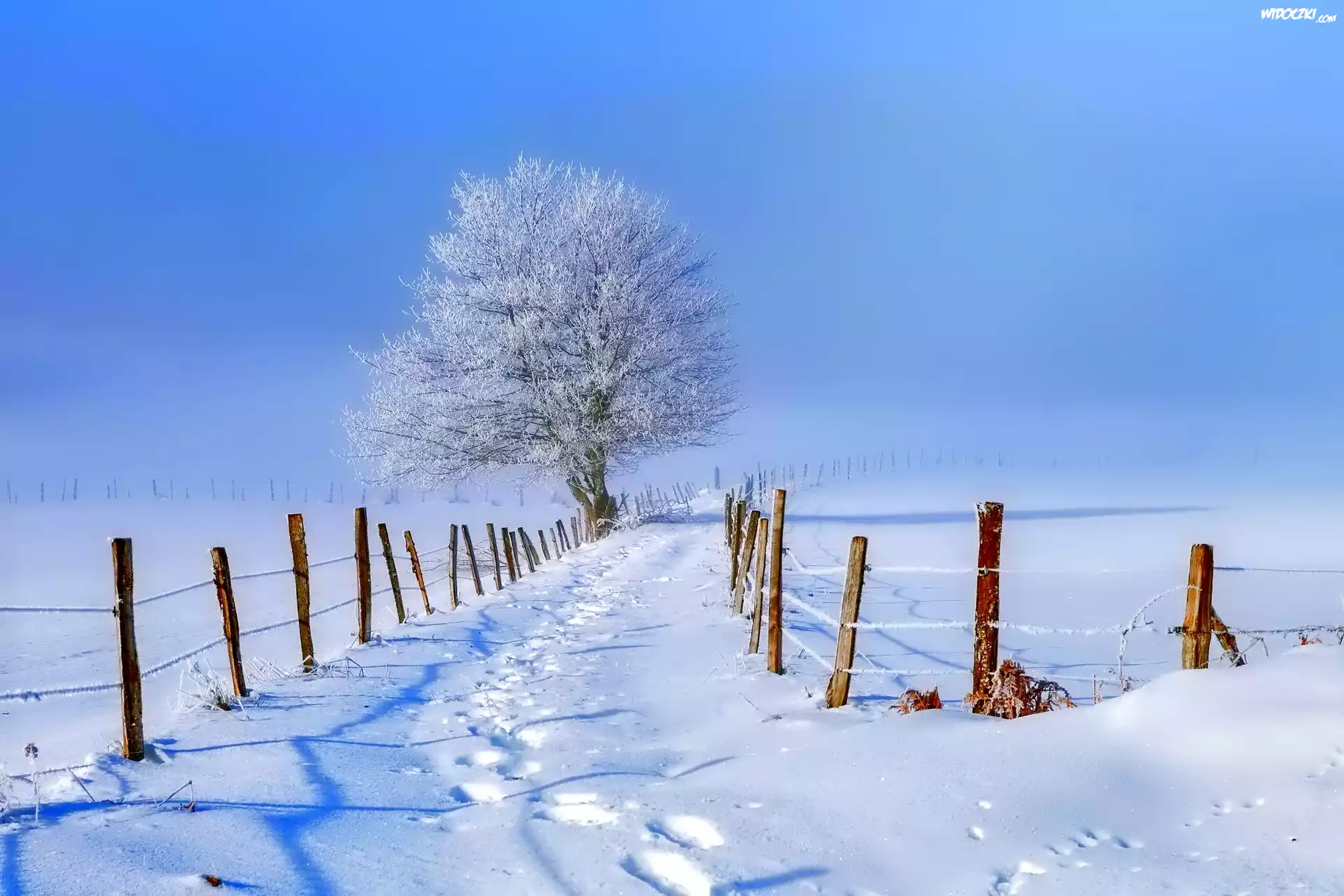 Zdjęcia, Zima, Droga, Ogrodzenie, Pola