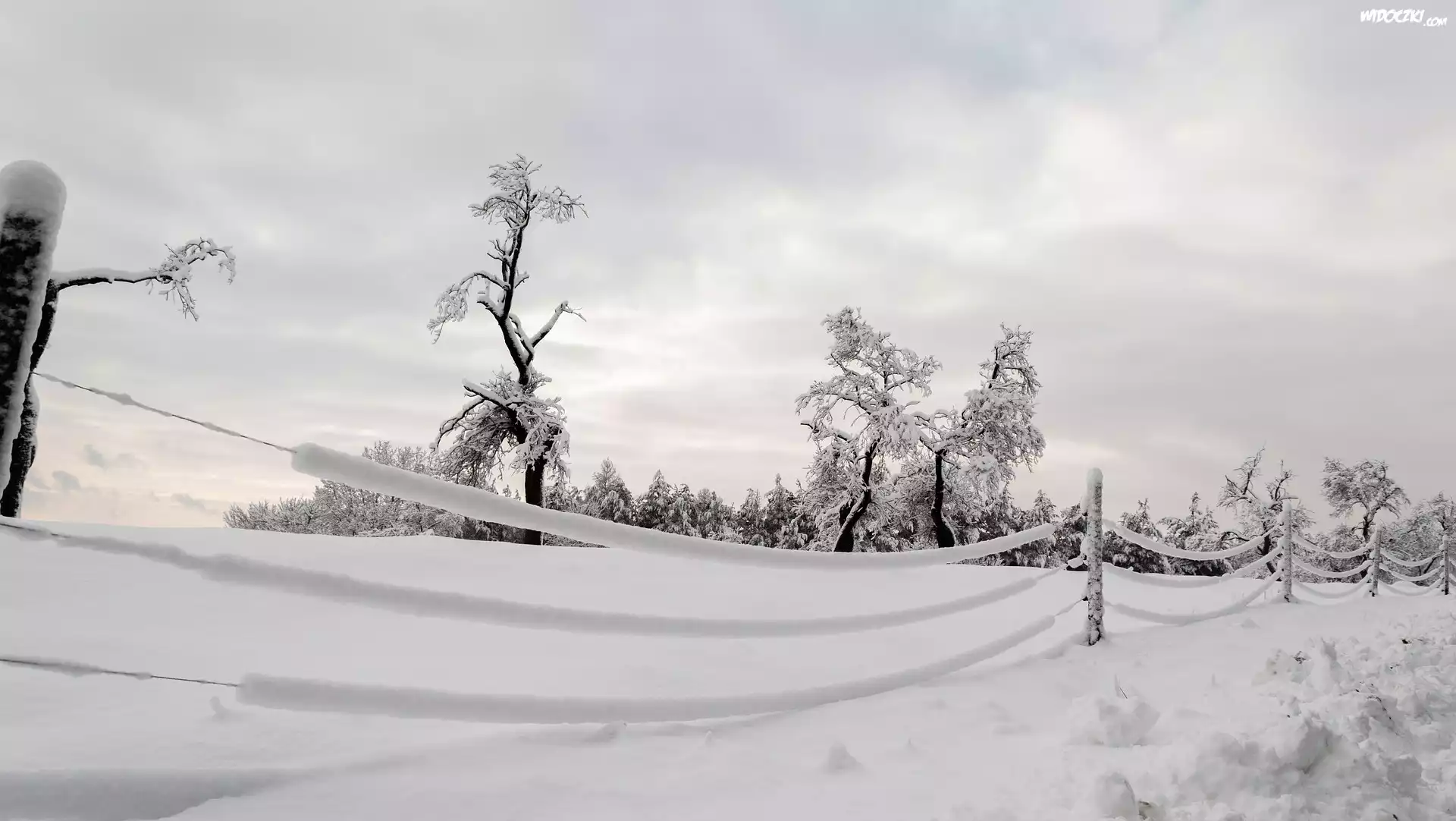 Zdj臋cia, Zima, Drzewa, Ogrodzenie, Chmury
