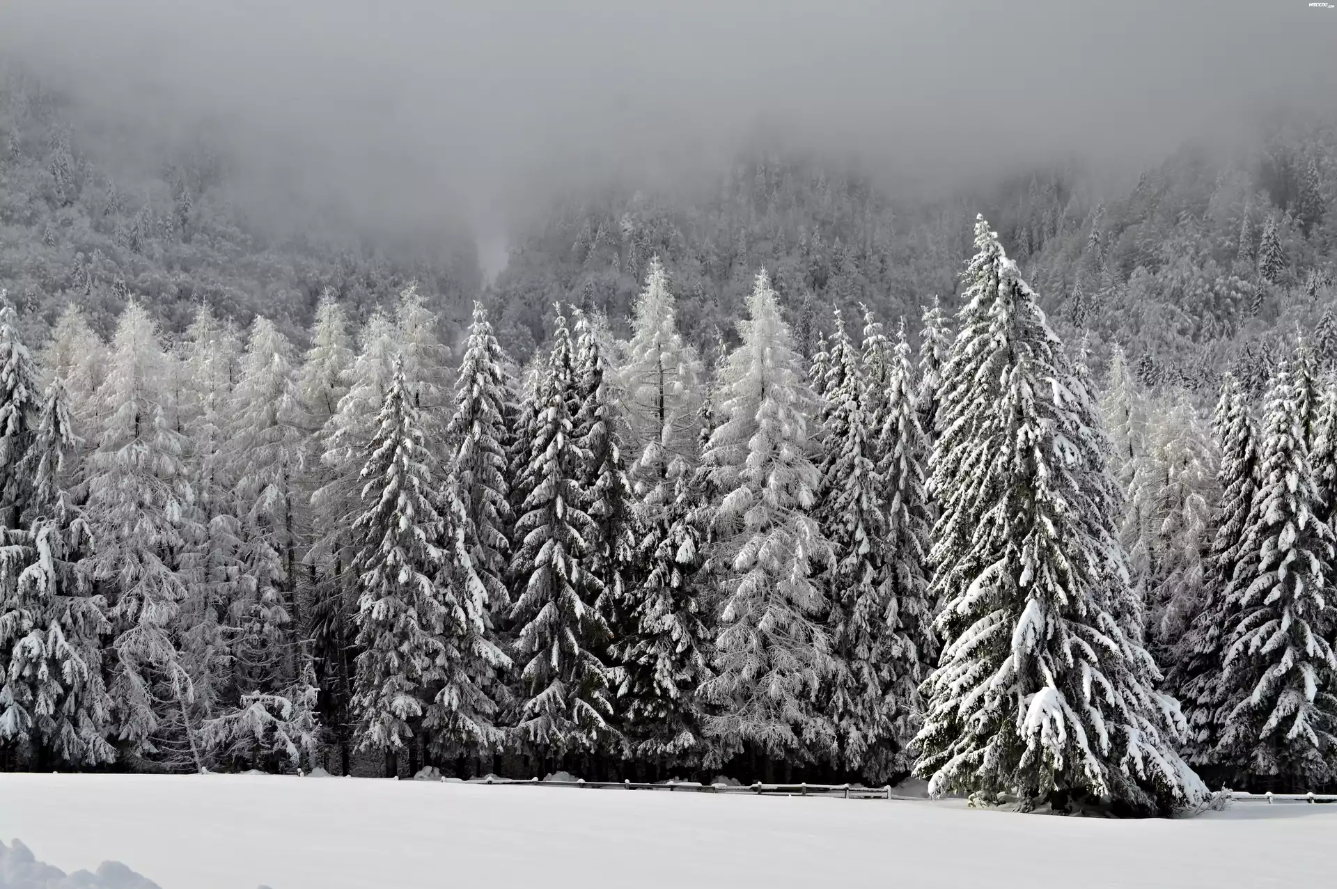 Zdjęcia, Zima, Las, Ogrodzenie, Mgła