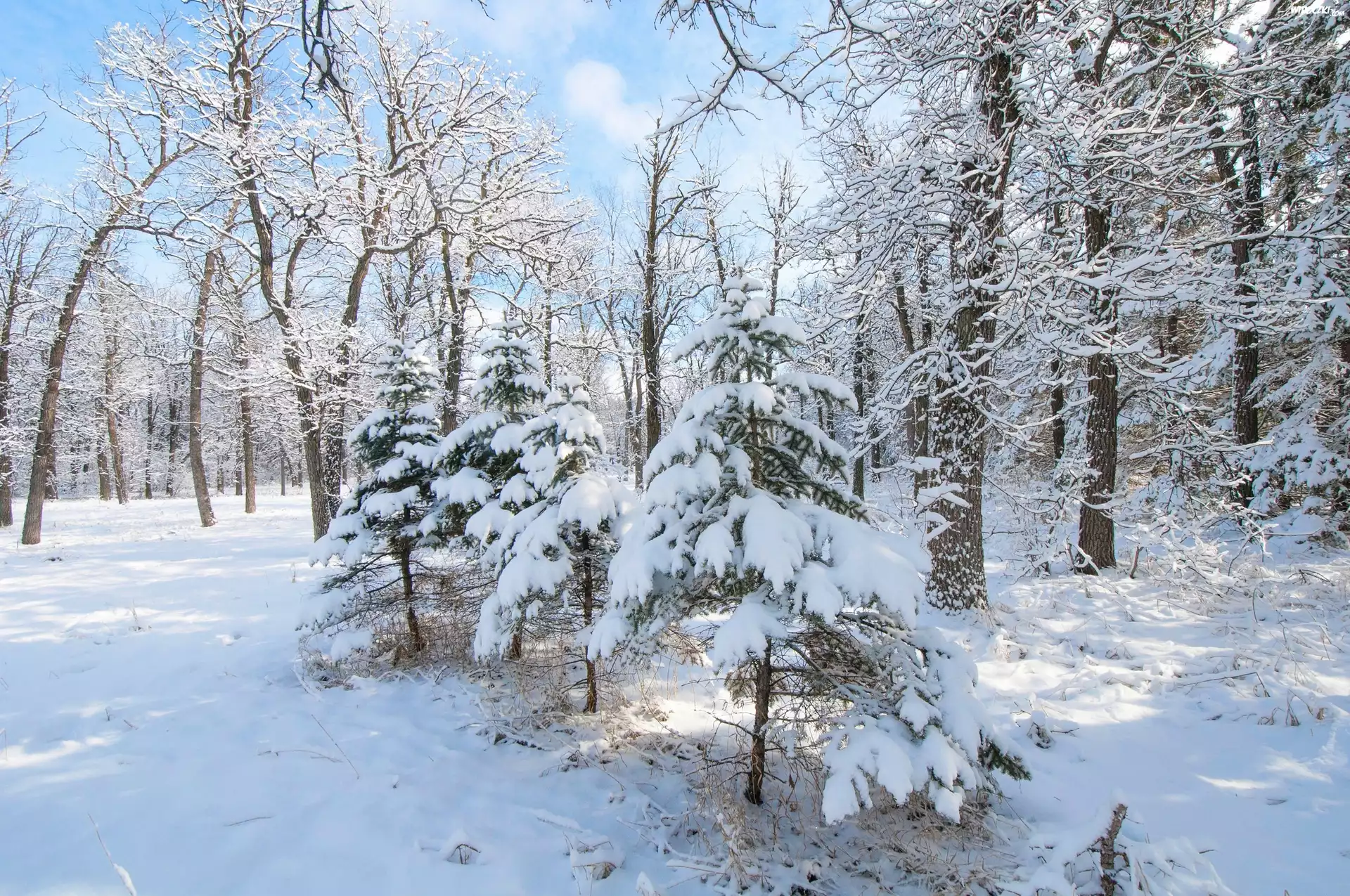 Zdjęcia, Zima, Las, Oprószone, Drzewa