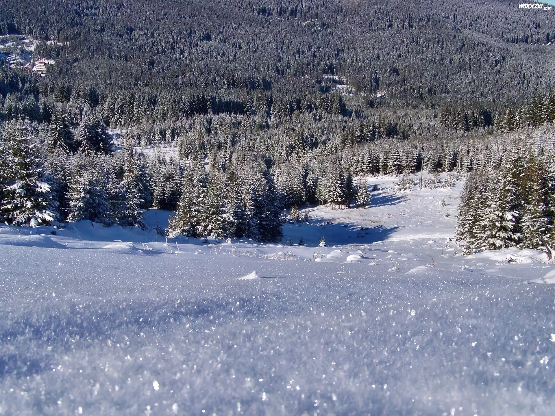 Zdjęcia, Zima, Las, Ośnieżona, Polana