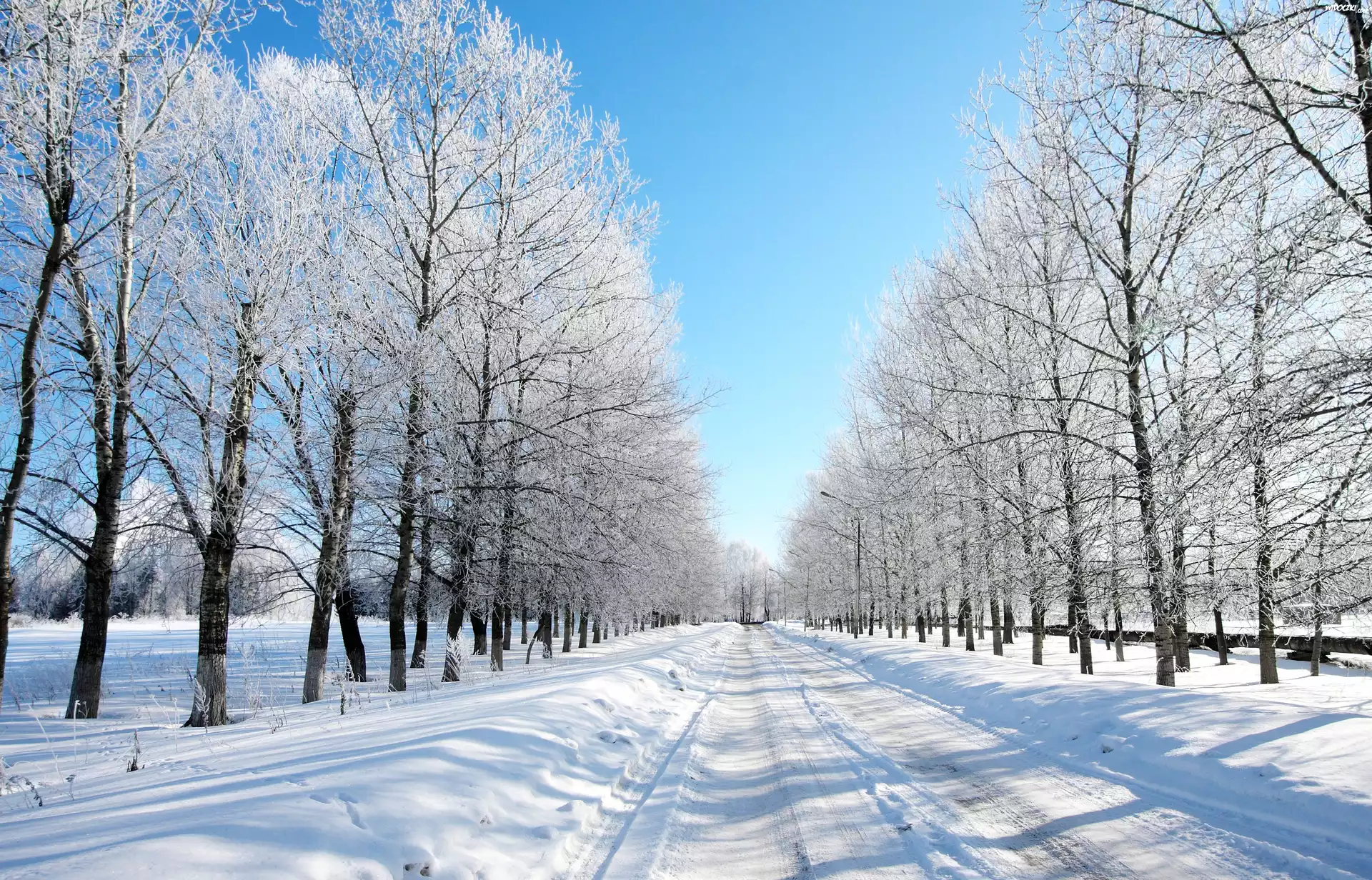 Zdjęcia, Zima, Droga, Ośnieżone, Drzewa