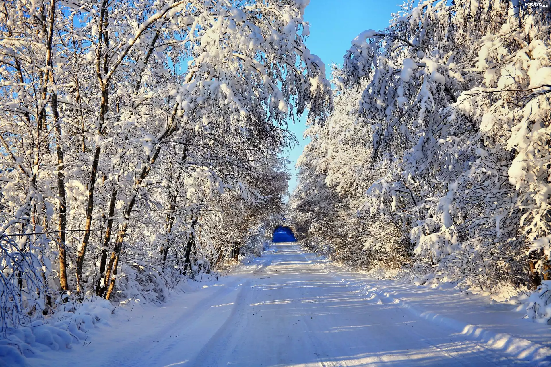 Zdjęcia, Zima, Droga, Ośnieżone, Drzewa