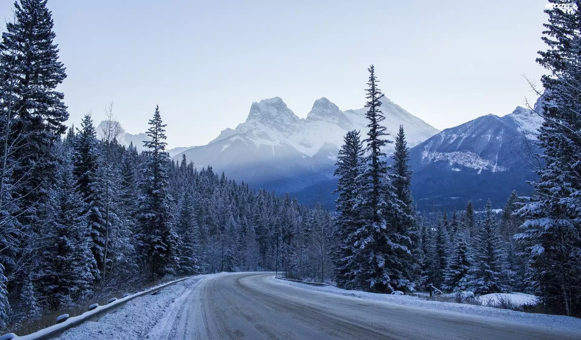 Zima, Góry, Droga, Ośnieżone, Świerki