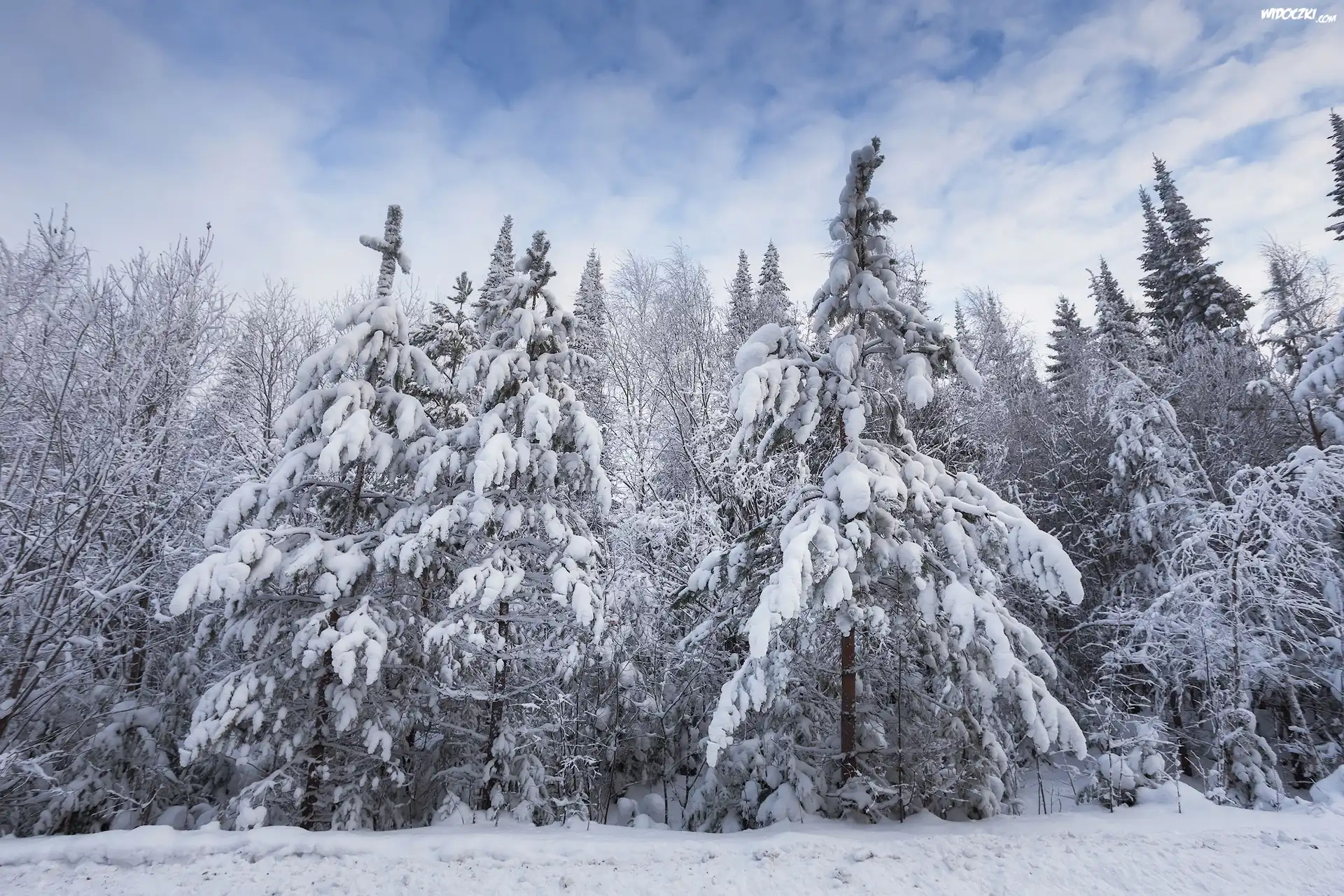 Zdjęcia, Zima, Drzewa, Ośnieżone, Świerki