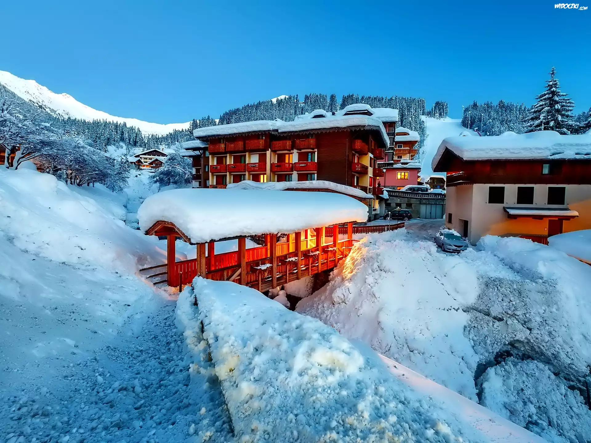 Zdjęcia, Zima, Góry, Ośnieżone, Domy