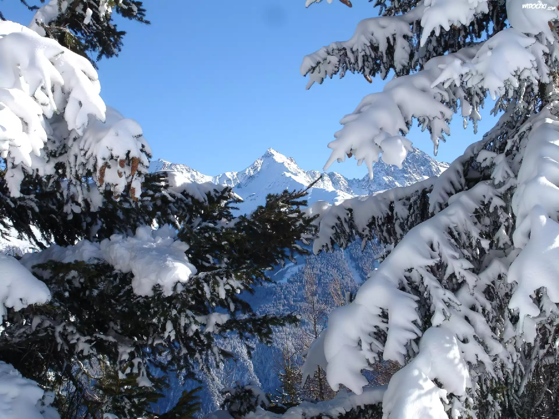 Zdjęcia, Zima, Góry, Ośnieżone, Gałęzie