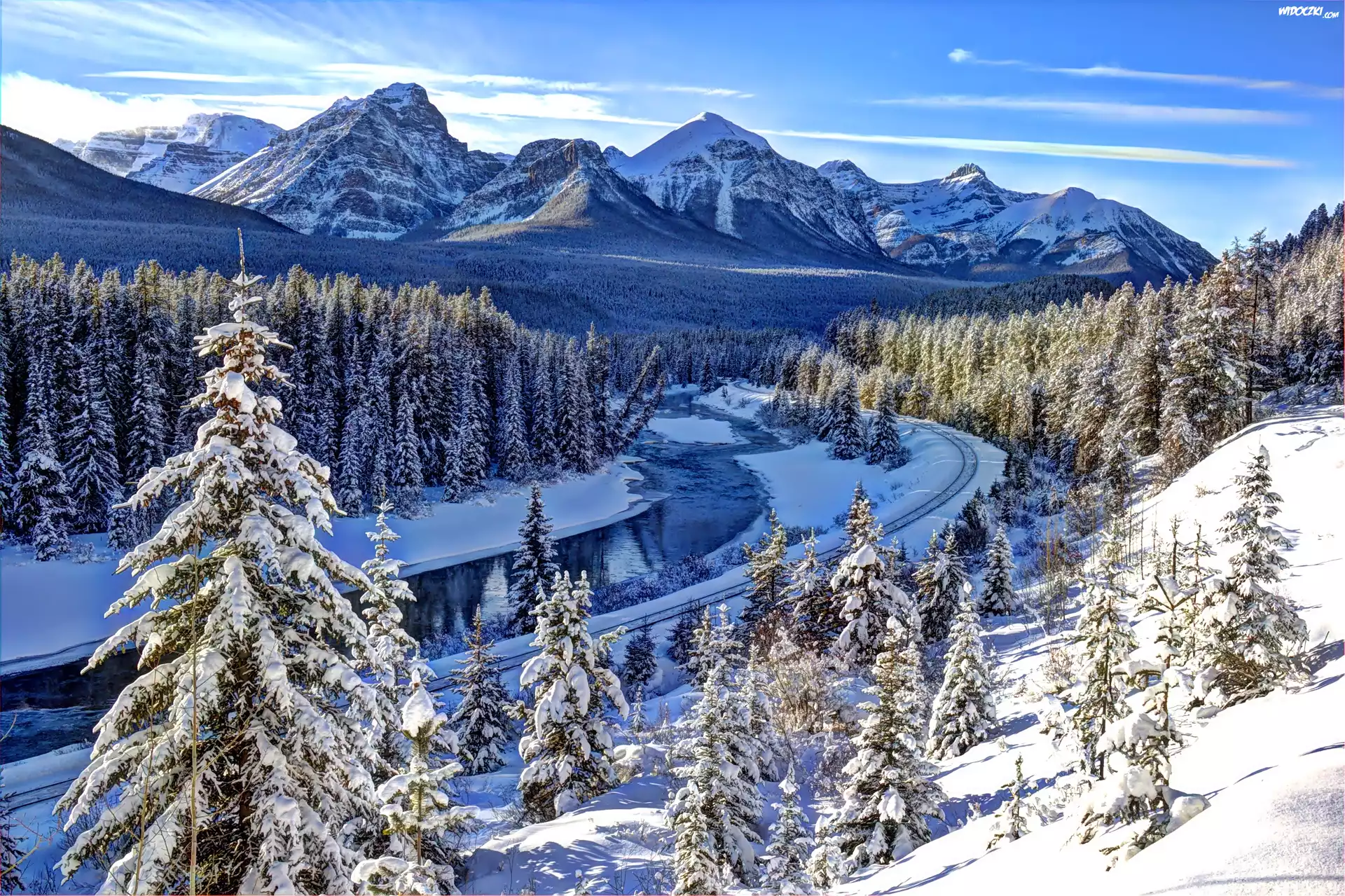 Zima, Rzeka, Góry, Ośnieżone, Świerki