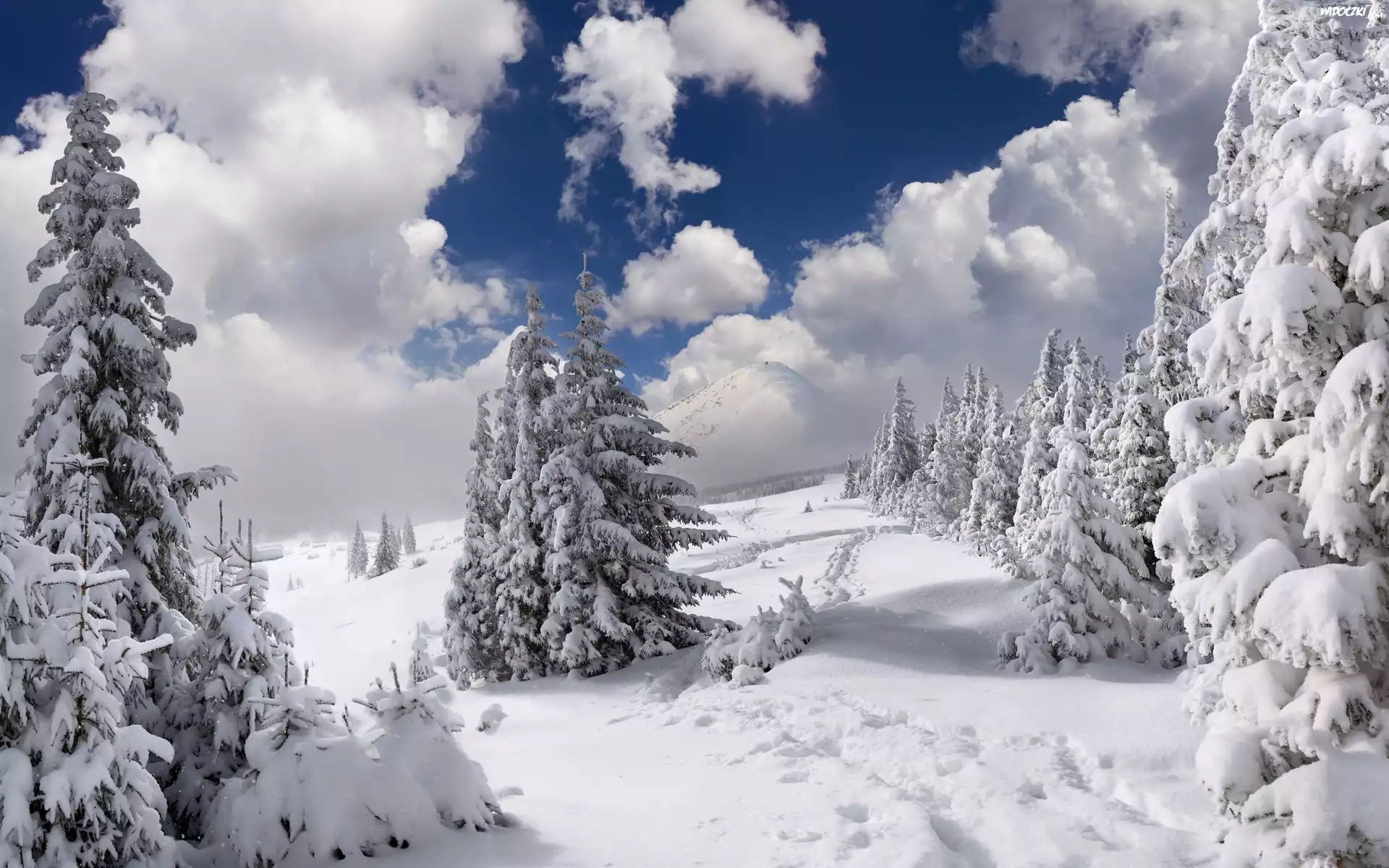 Góra, Chmury, las Zachód Słońca, Góra, Plaża Zima, Śnieg, Lód, Owoce Góra Góra Góra Choinki, Śnieg, Słońce, Zima Wilk, Zima, Wycie Zima, Chmury, Widok Zima, Drzewa, Szron, Rzeka Góra, Niebo Góra Góra, Zima Góra, Skały