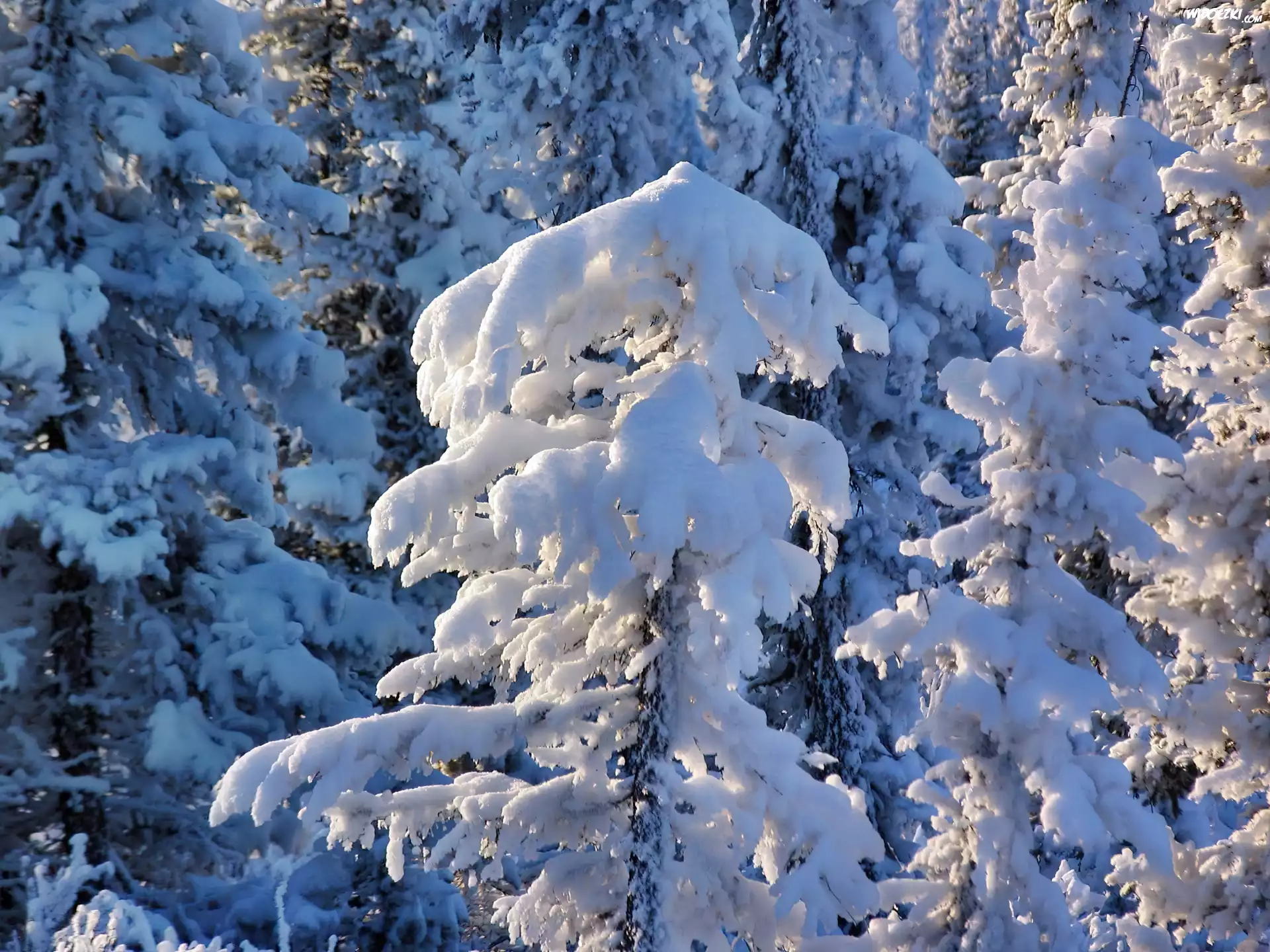 Zdjęcia, Zima, Las, Ośnieżone, Świerki