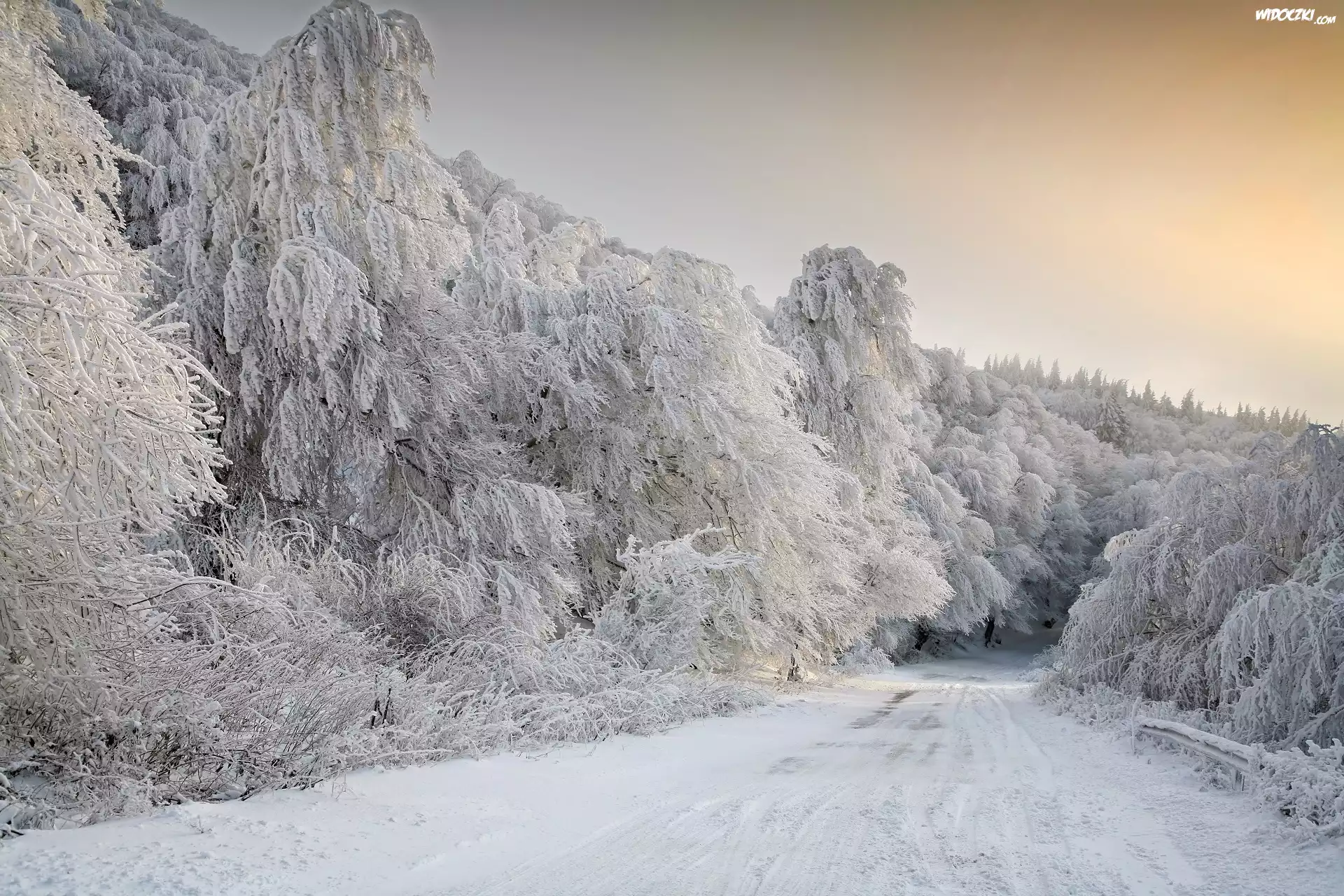 Zdjęcia, Zima, Droga, Śnieg, Las, Ośnieżone, Drzewa