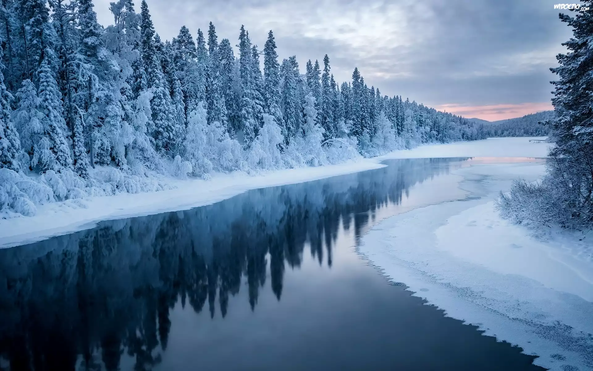 Zdjęcia, Zima, Rzeka, Śnieg, Ośnieżone, Drzewa