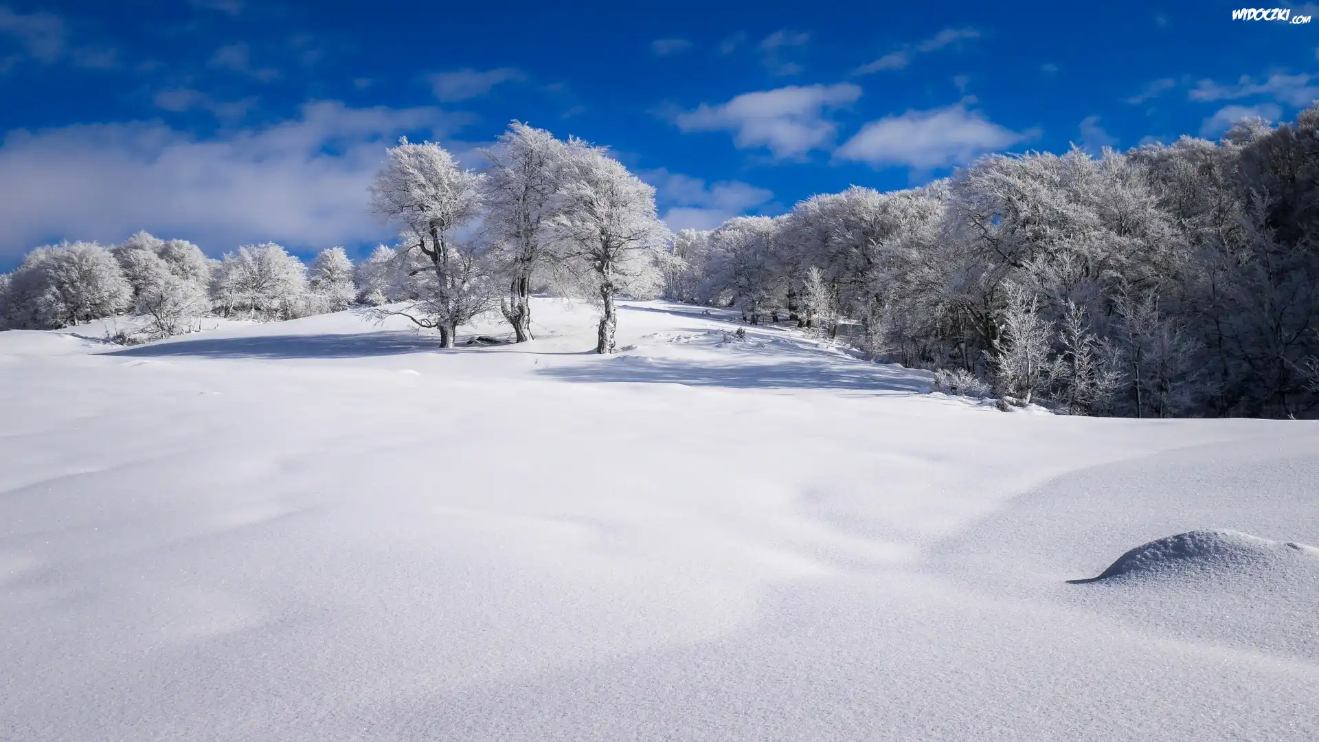 Zdjęcia, Zima, Pole, Ośnieżone, Drzewa