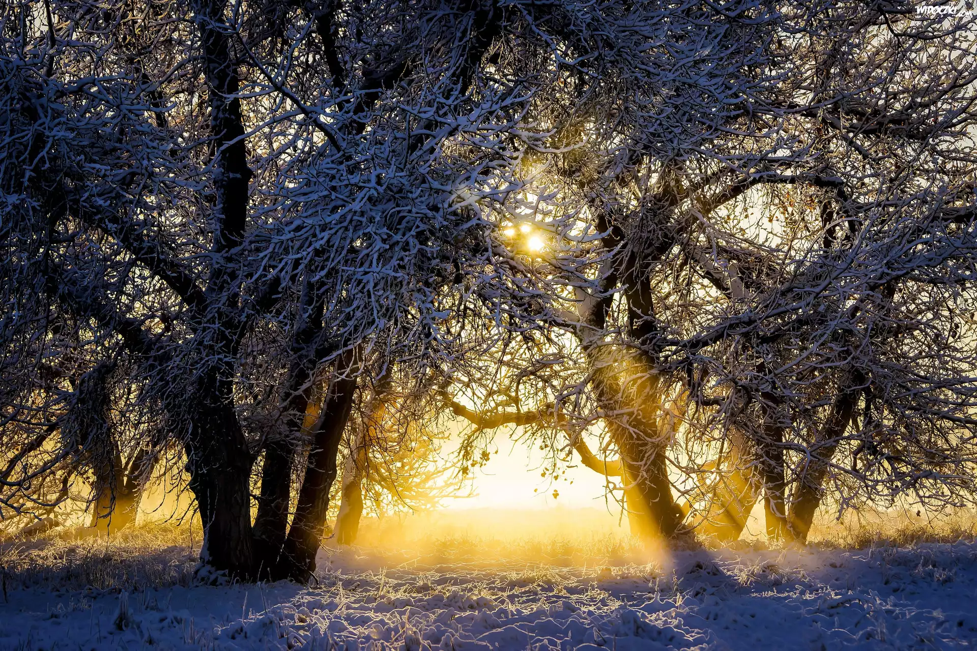 Zdjęcia, Zima, Przebijające Światło, Ośnieżone, Drzewa