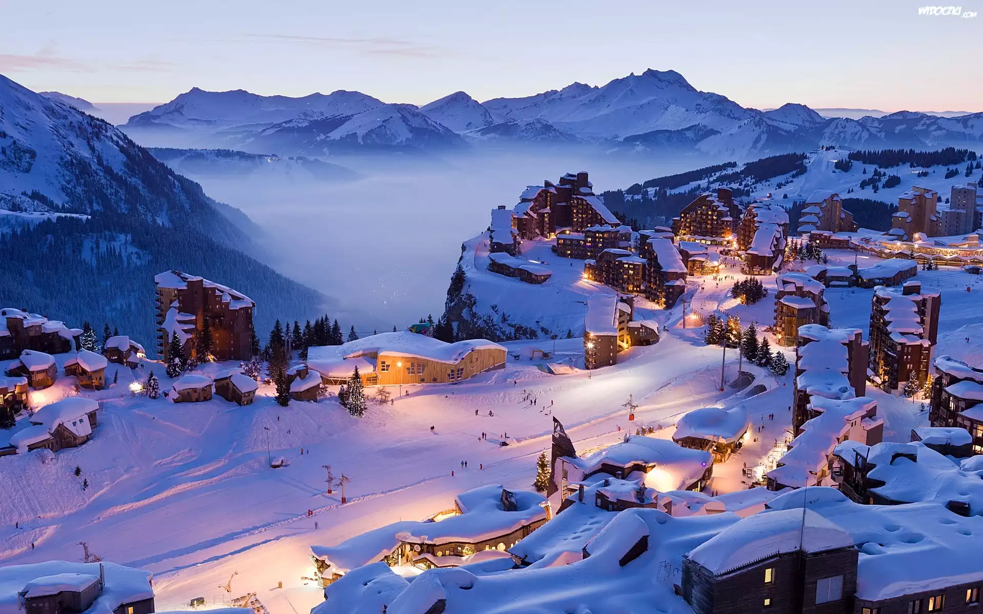 Zdjęcia, Zima, Góry, Oświetlone, Miasteczko