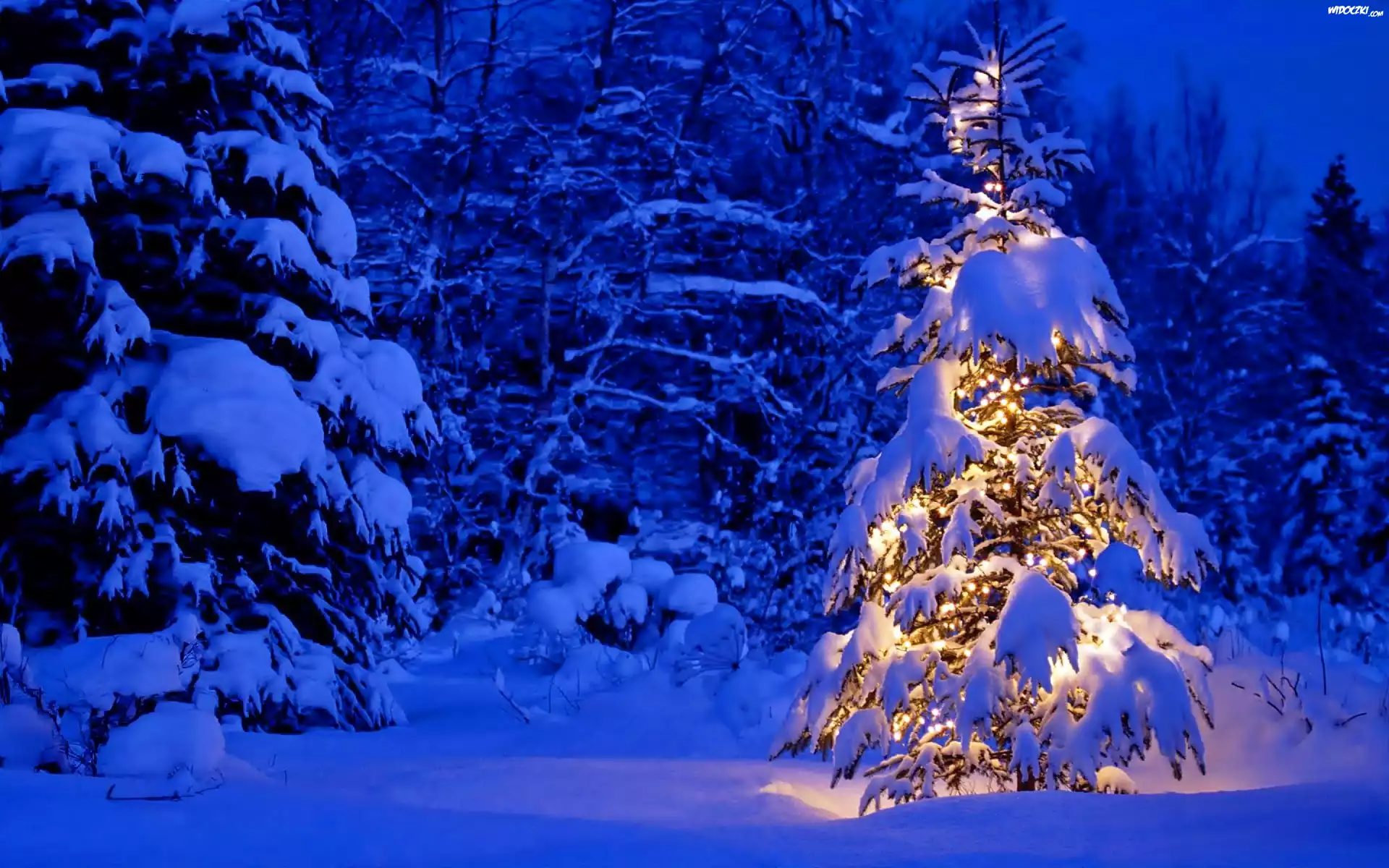 Zdjęcia, Zima, Las, Oświetlony, Świerk