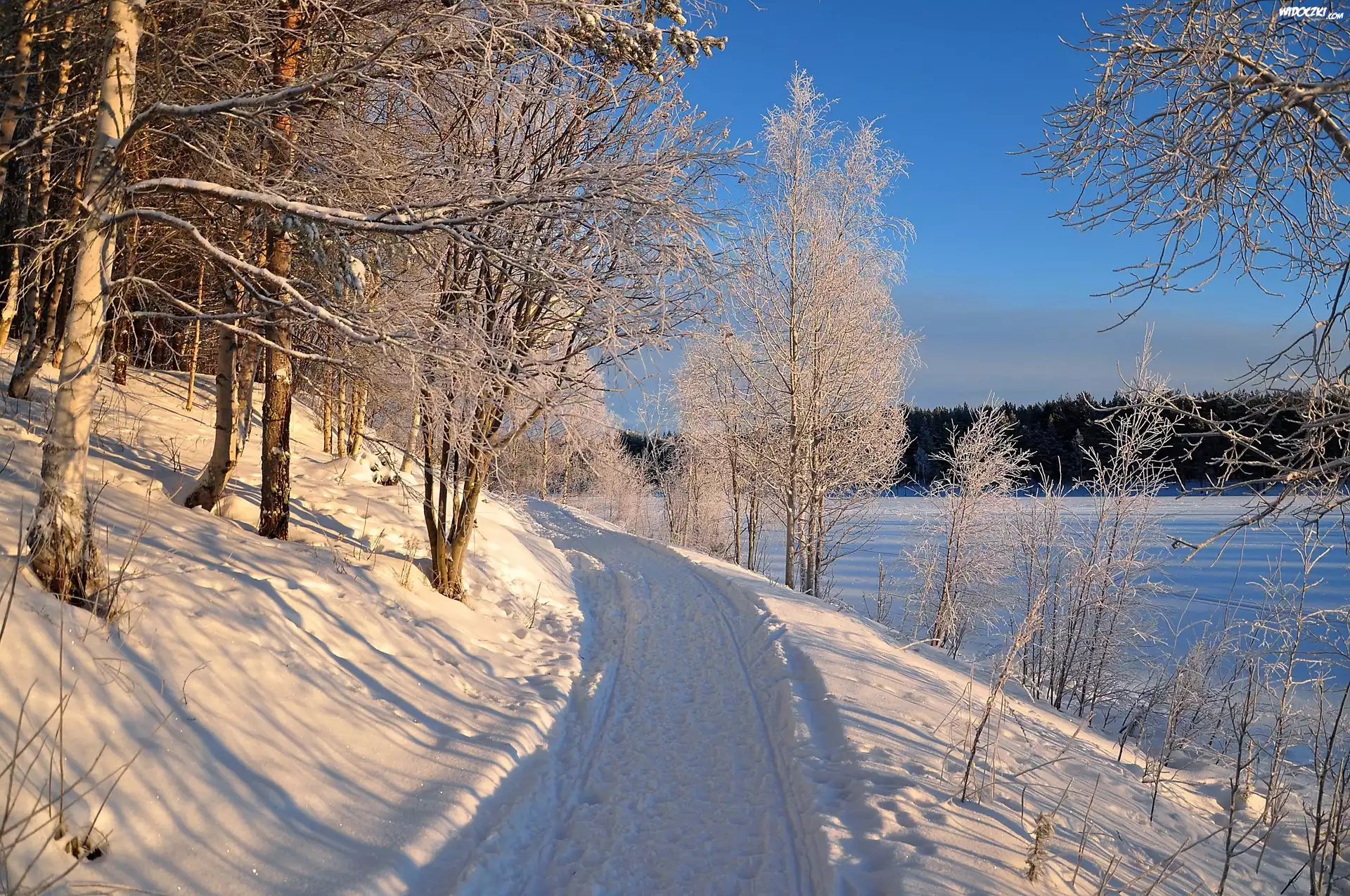 Zdjęcia, Zima, Ścieżka, Oszronione, Drzewa