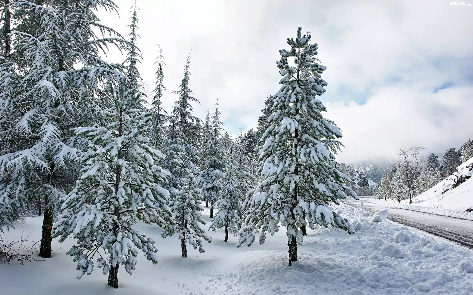 Zdjęcia, Zima, Droga, Oszronione, Drzewa