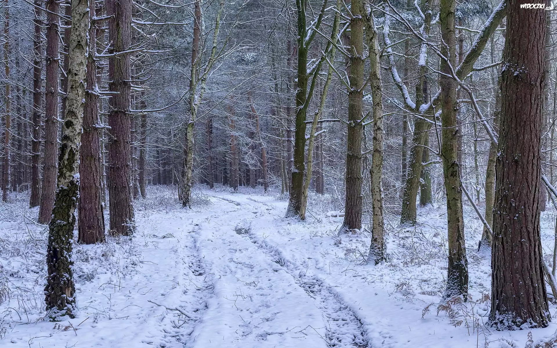 Zdjęcia, Zima, Las, Śnieg, Droga, Oszronione, Drzewa