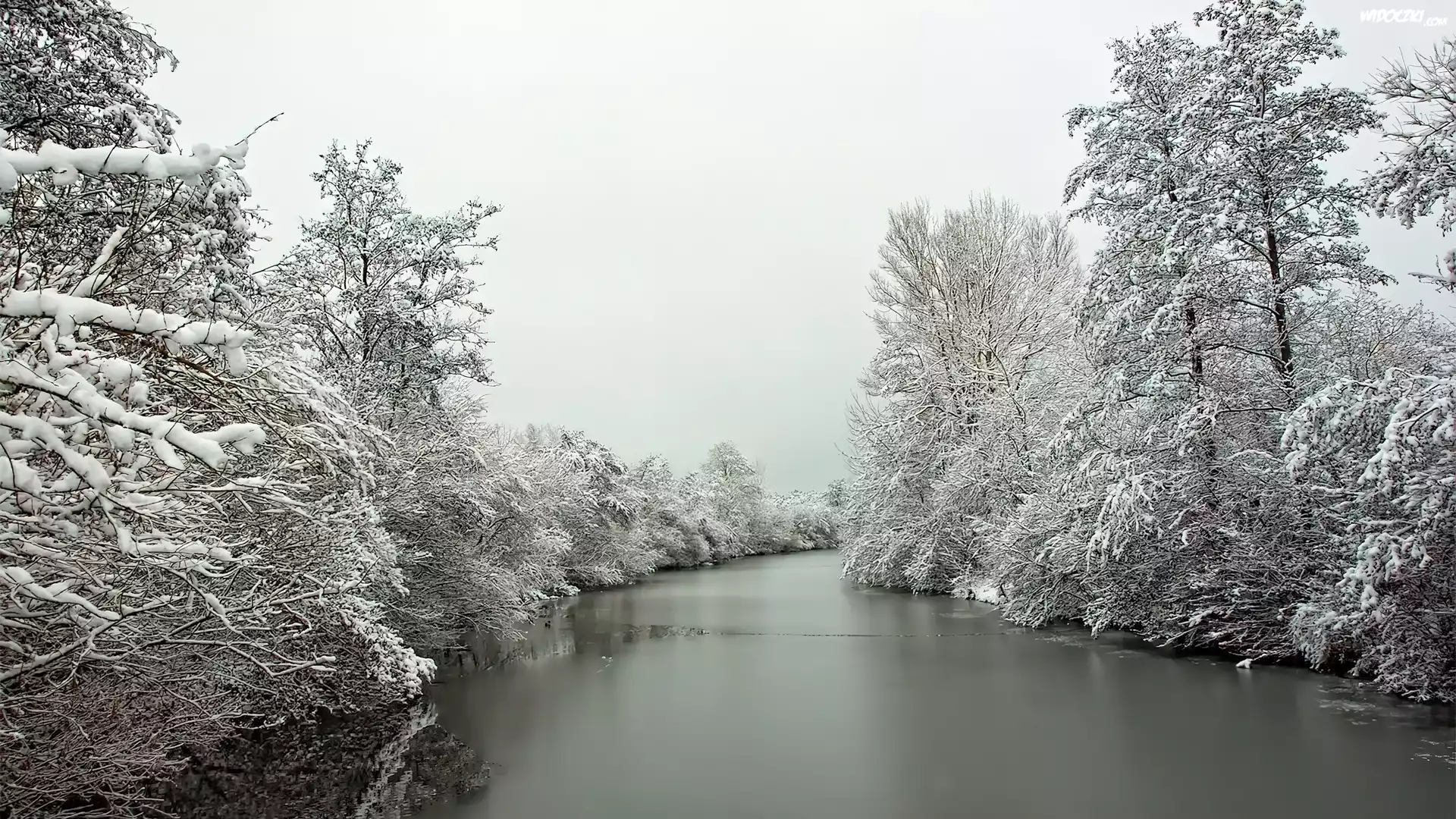 Zima, Rzeka, Oszronione, Drzewa