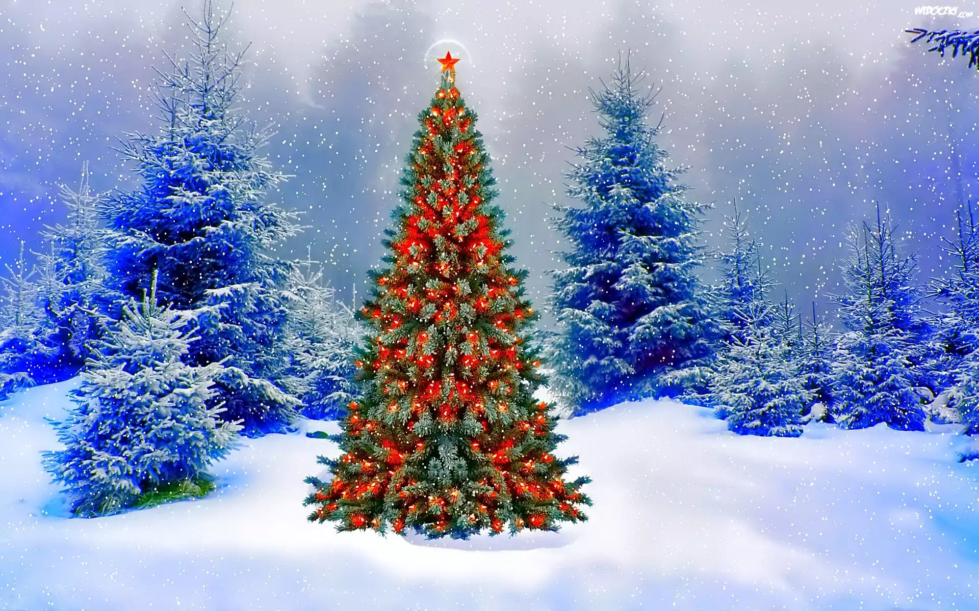 Zdjęcia, Zima, Las, Świąteczna, Choinka, Padający, Śnieg