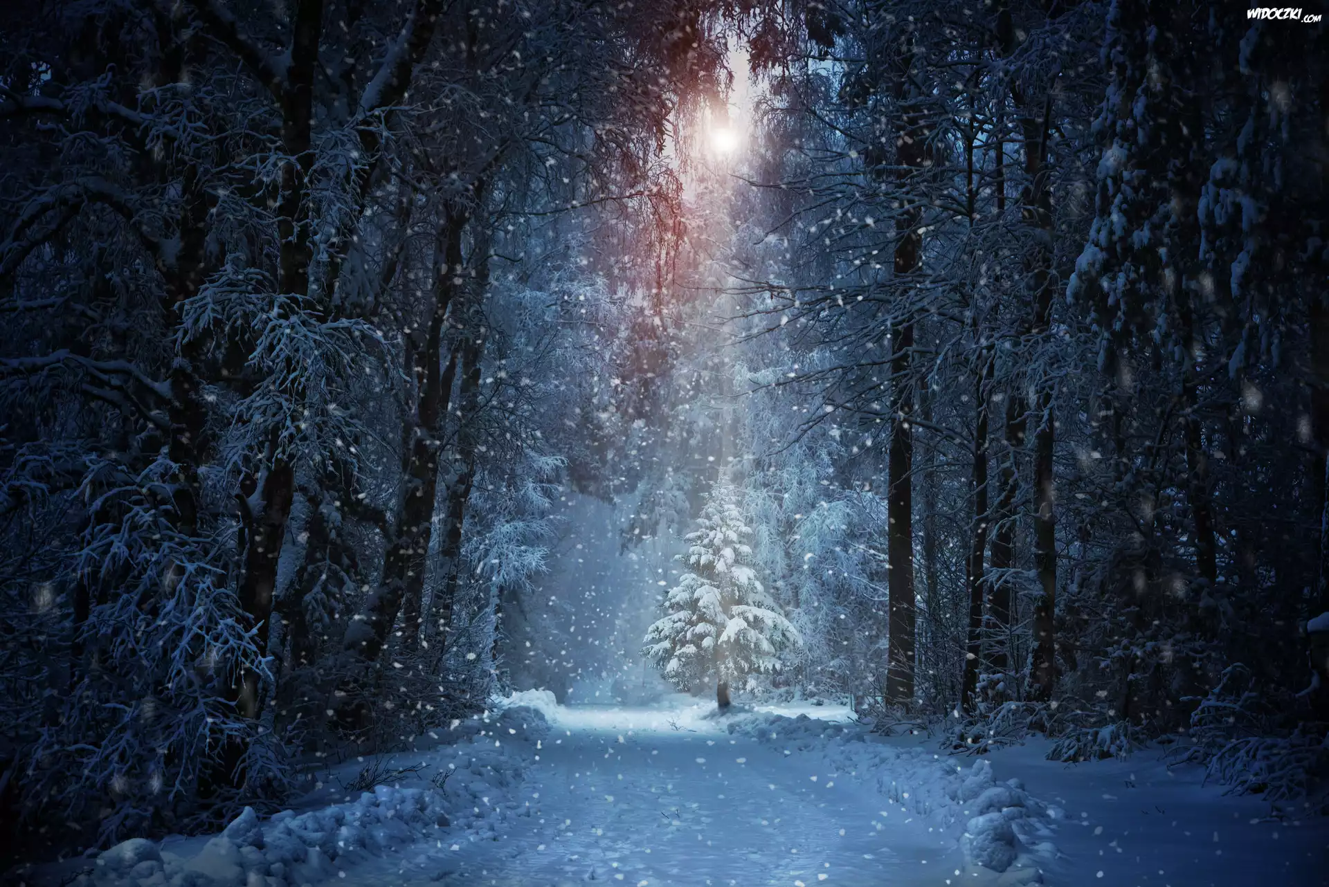 Zdjęcia, Zima, Las, Świerk, Padający, Śnieg