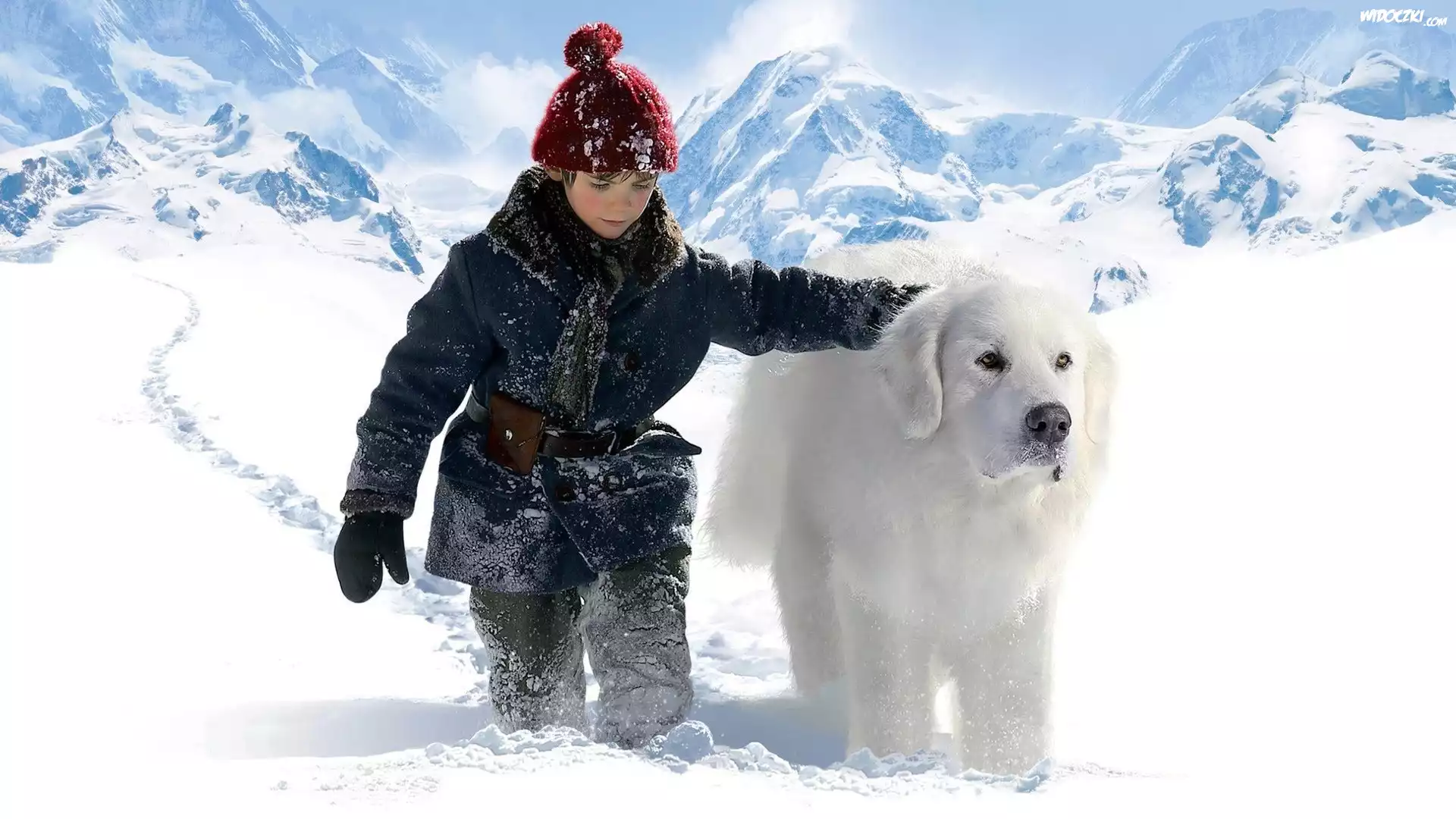 Zdjęcia, Dziecko, Félix Bossuet, Pirenejski pies górski, Góry, Alpy, Zima