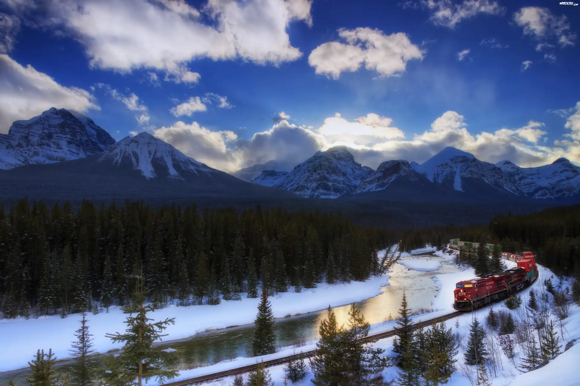 Zdjęcia, Zima, Góry, Rzeka, Pociąg spalinowy