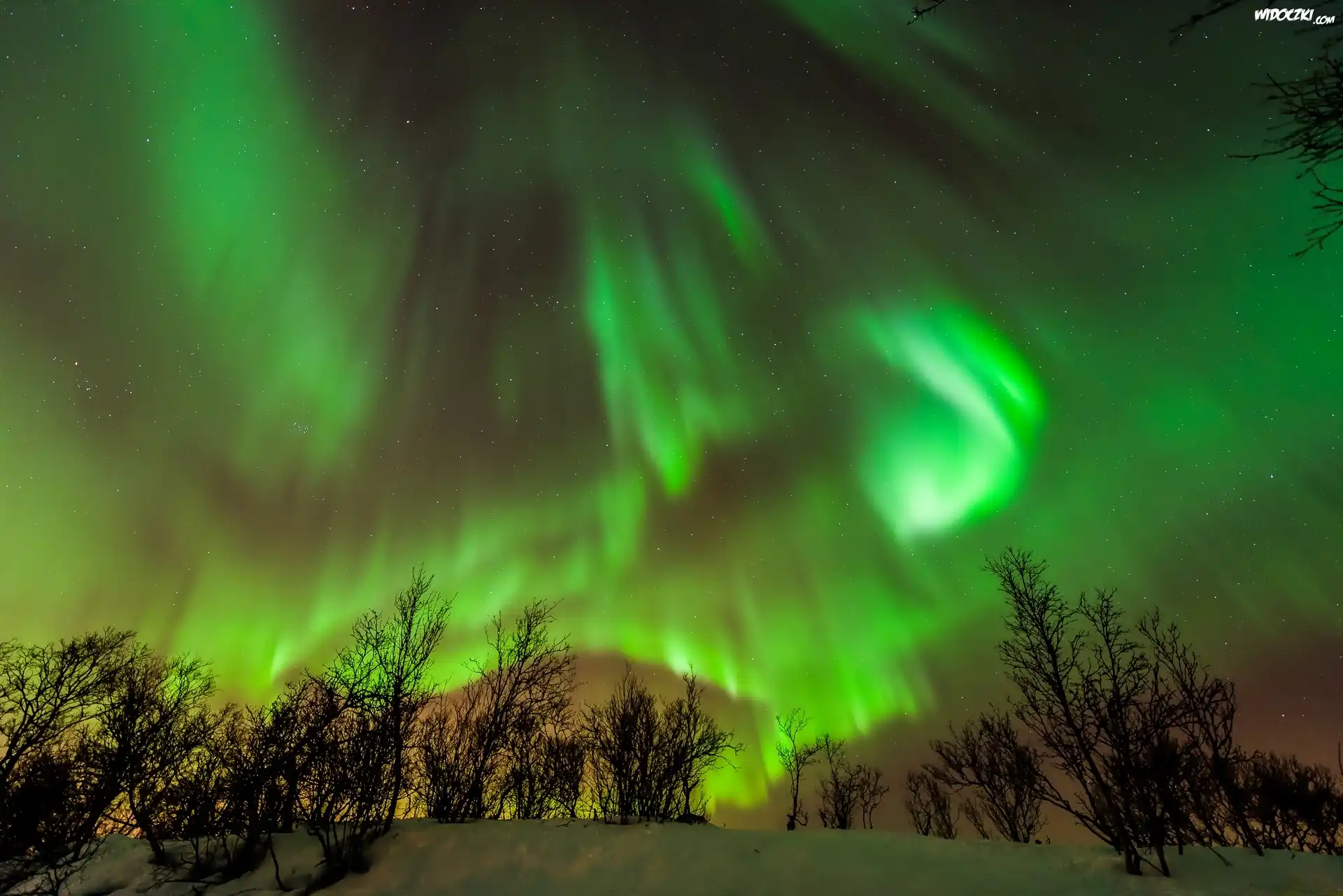Zdj臋cia, Zima, Zorza, Polarna, Krzewy