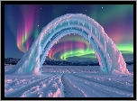 Zima, Oblodzony, Ośnieżony, Łuk, Sople, Zorza polarna, Śnieg, AI