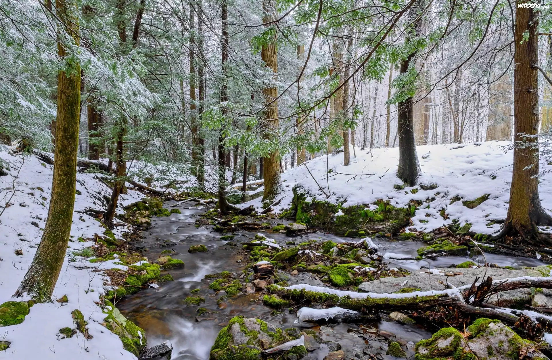 Zima, Las, Rzeka, Potok, Drzewa