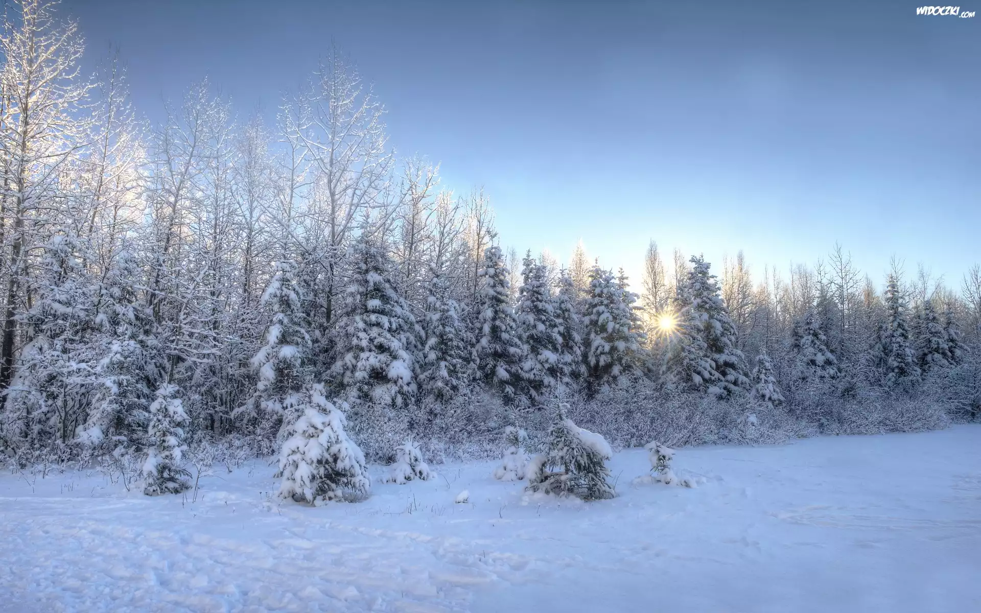 Zdjęcia, Zima, Las, Drzewa, Promienie słońca