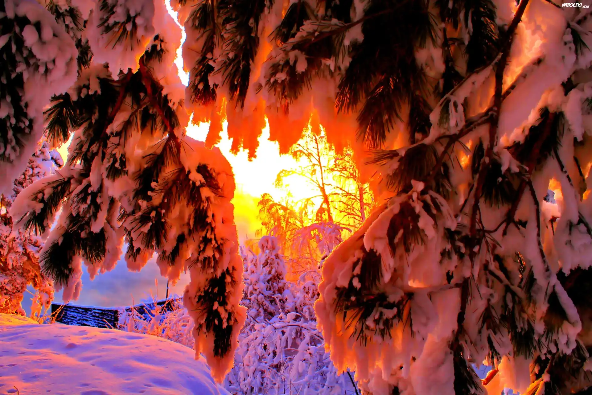 Zdjęcia, Zima, Ośnieżone Gałęzie, Drzew Promienie, Słońca