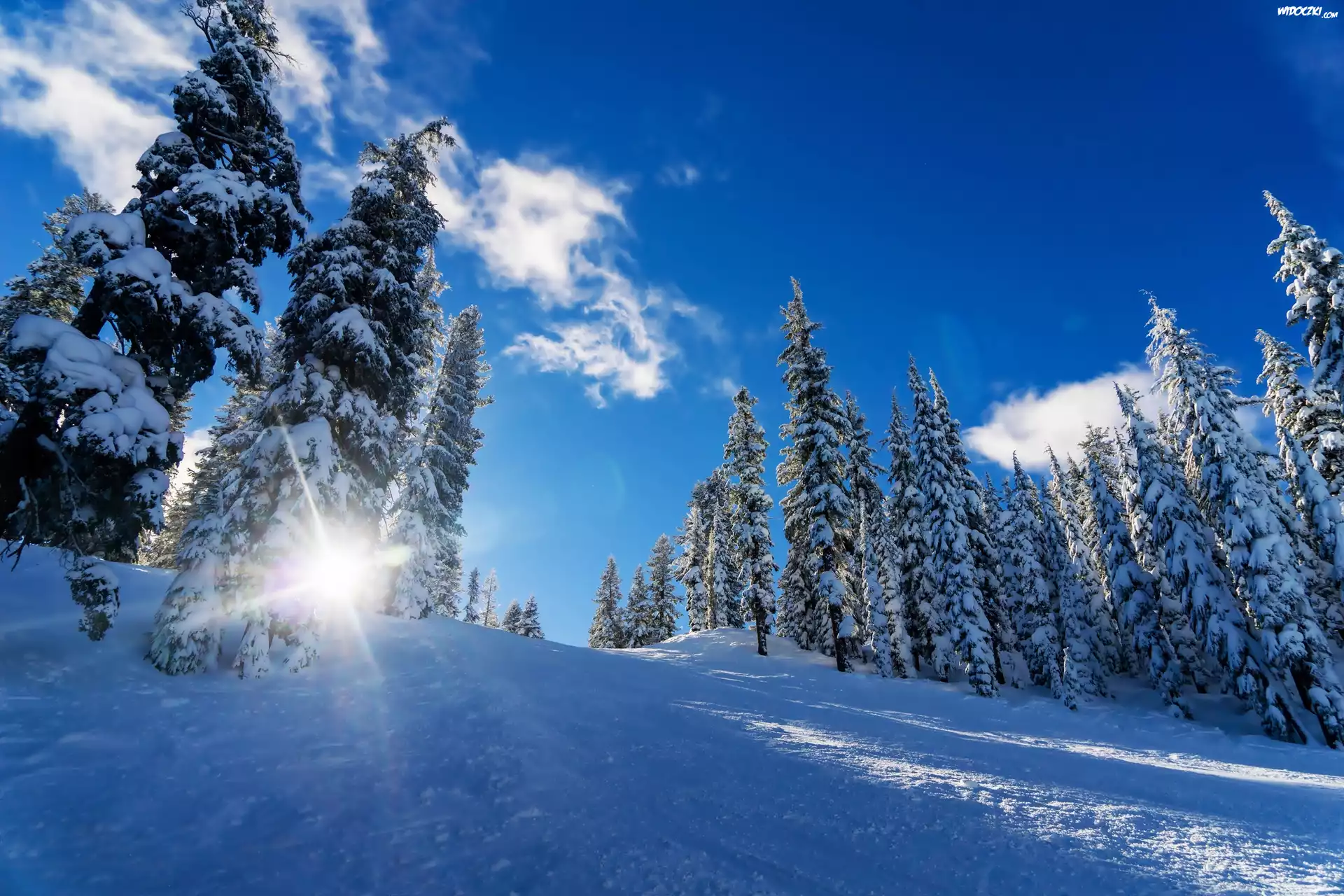 Zima, Śnieg, Las, Promienie słońca