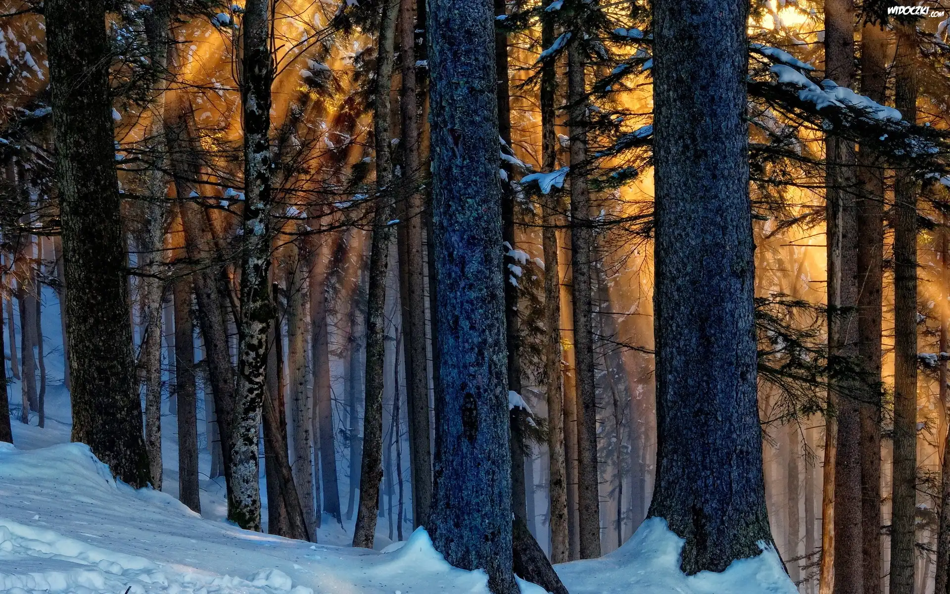 Zdjęcia, Zima, Las, Promienie, Słońca