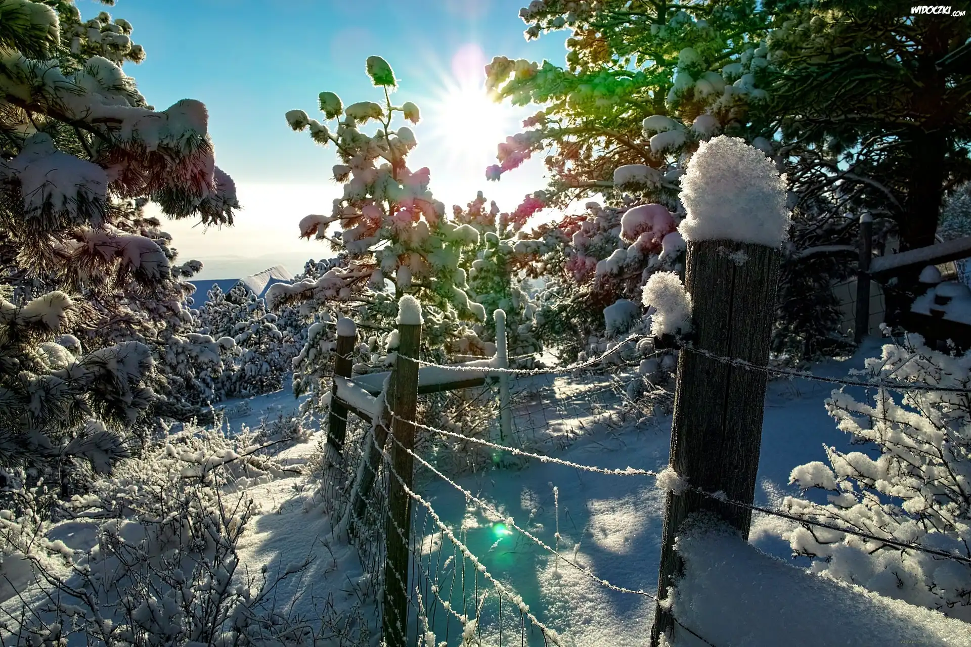 Zdjęcia, Zima, Ogrodzenie, Promienie Słońca