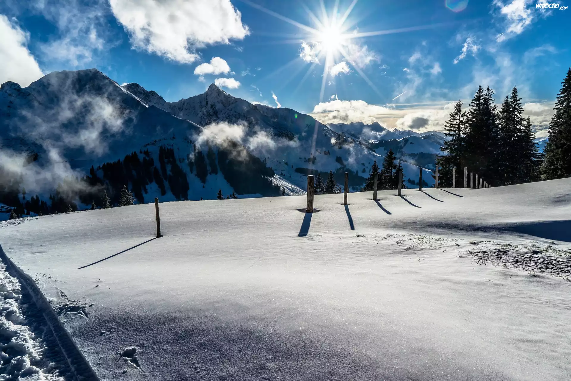 Zdjęcia, Zima, Góry, Poranek, Promienie słońca