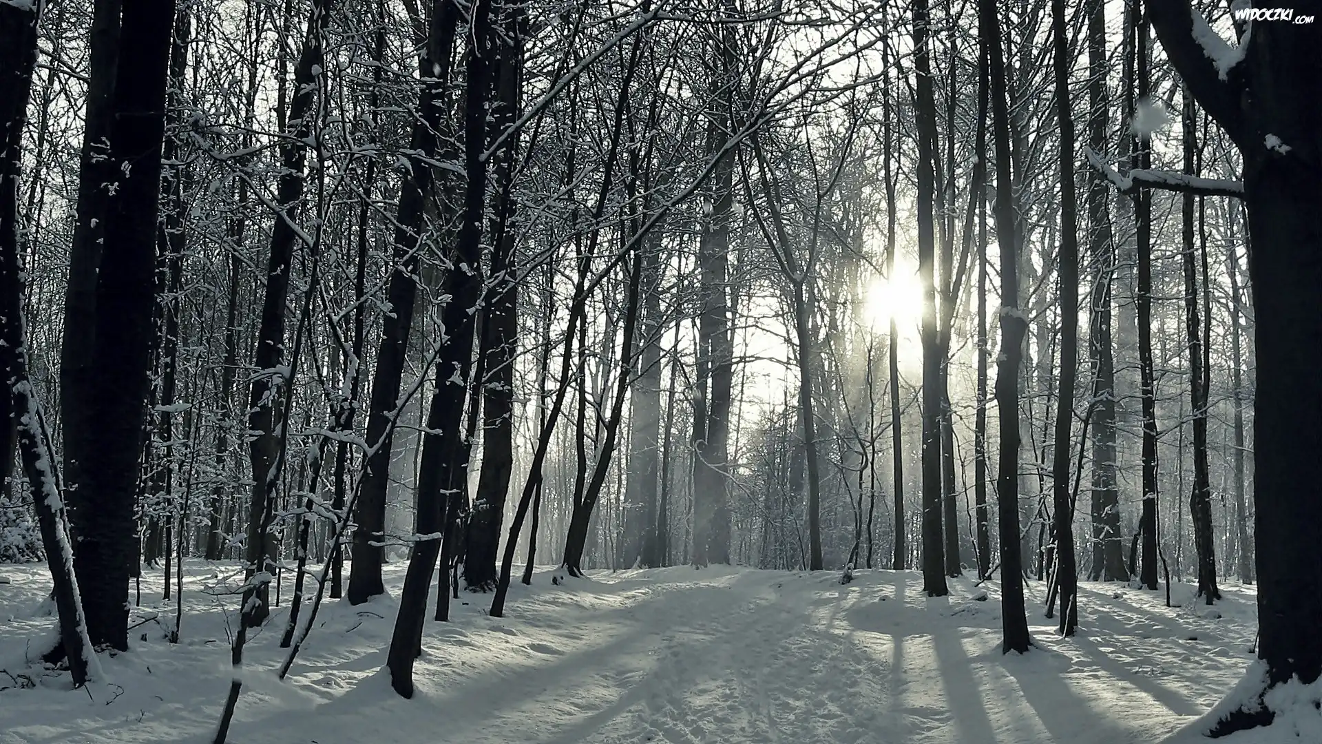 Zdjęcia, Zima, Las, Droga, Przebijające, Światło