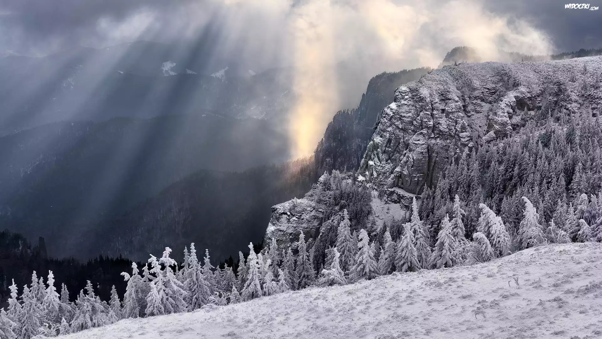 Zdjęcia, Zima, Góry, Drzewa, Przebijające Światło