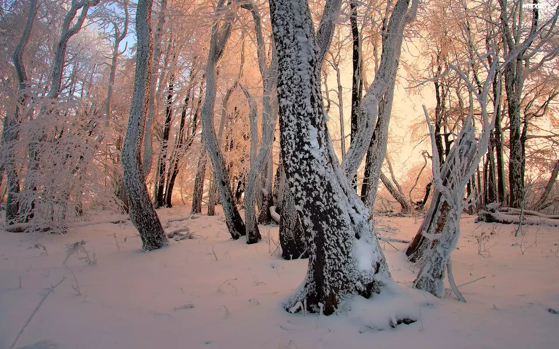 Zdjęcia, Zima, Ośnieżone, Drzewa, Przebijające Światło