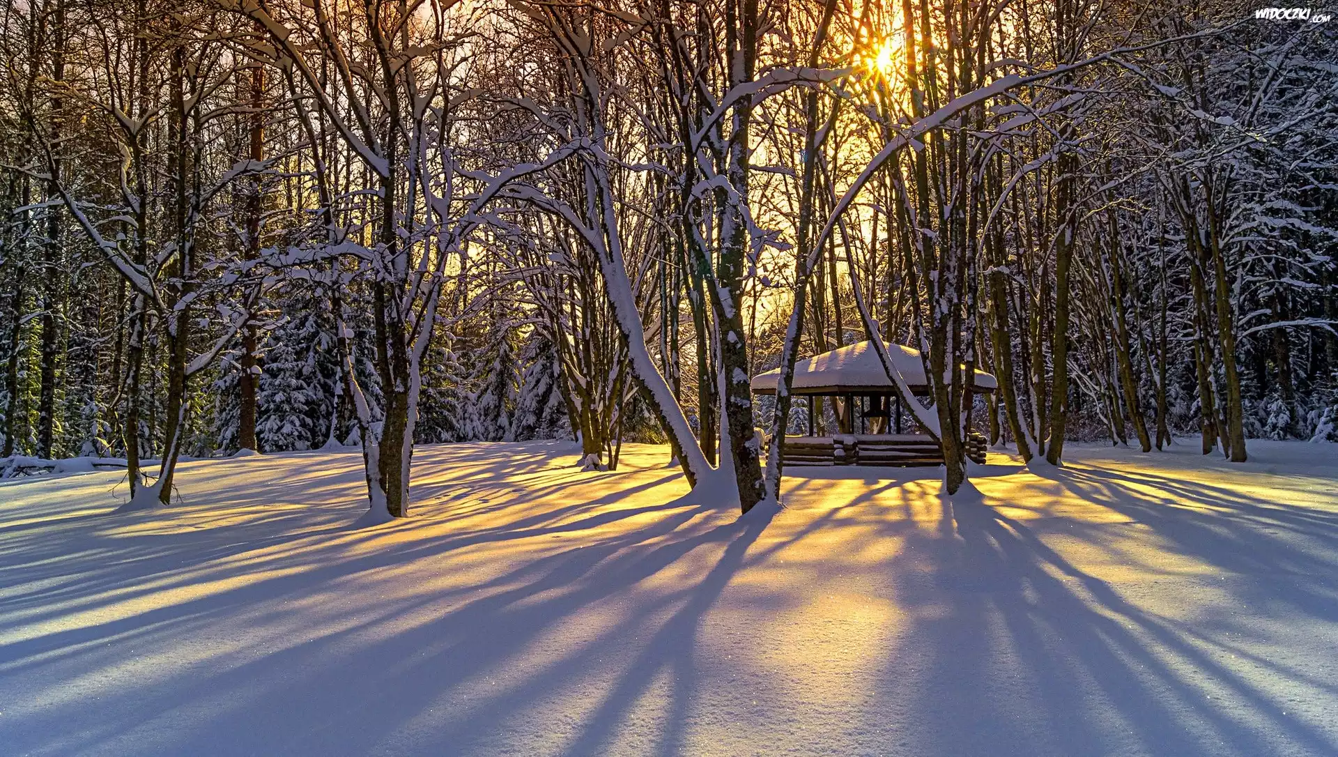 Zima, Las, Śnieg, Przebijające, Światło