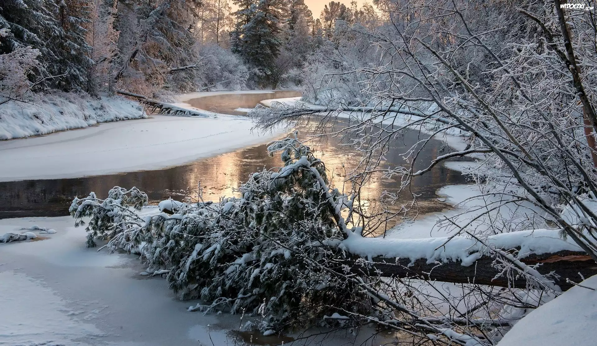 Zima, Rzeka, Przewrócone, Drzewo