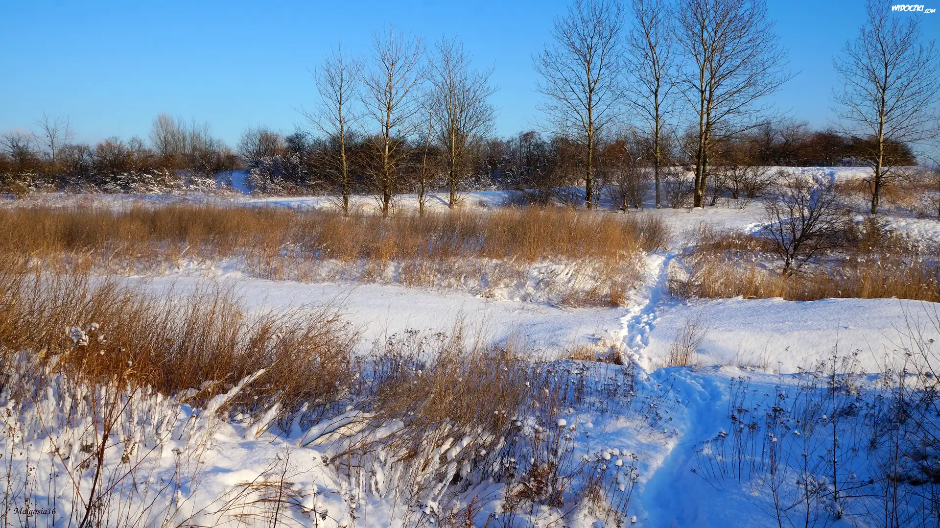 Zdjęcia, Zima, Śnieg, Uschnięte, Rośliny, Drzewa