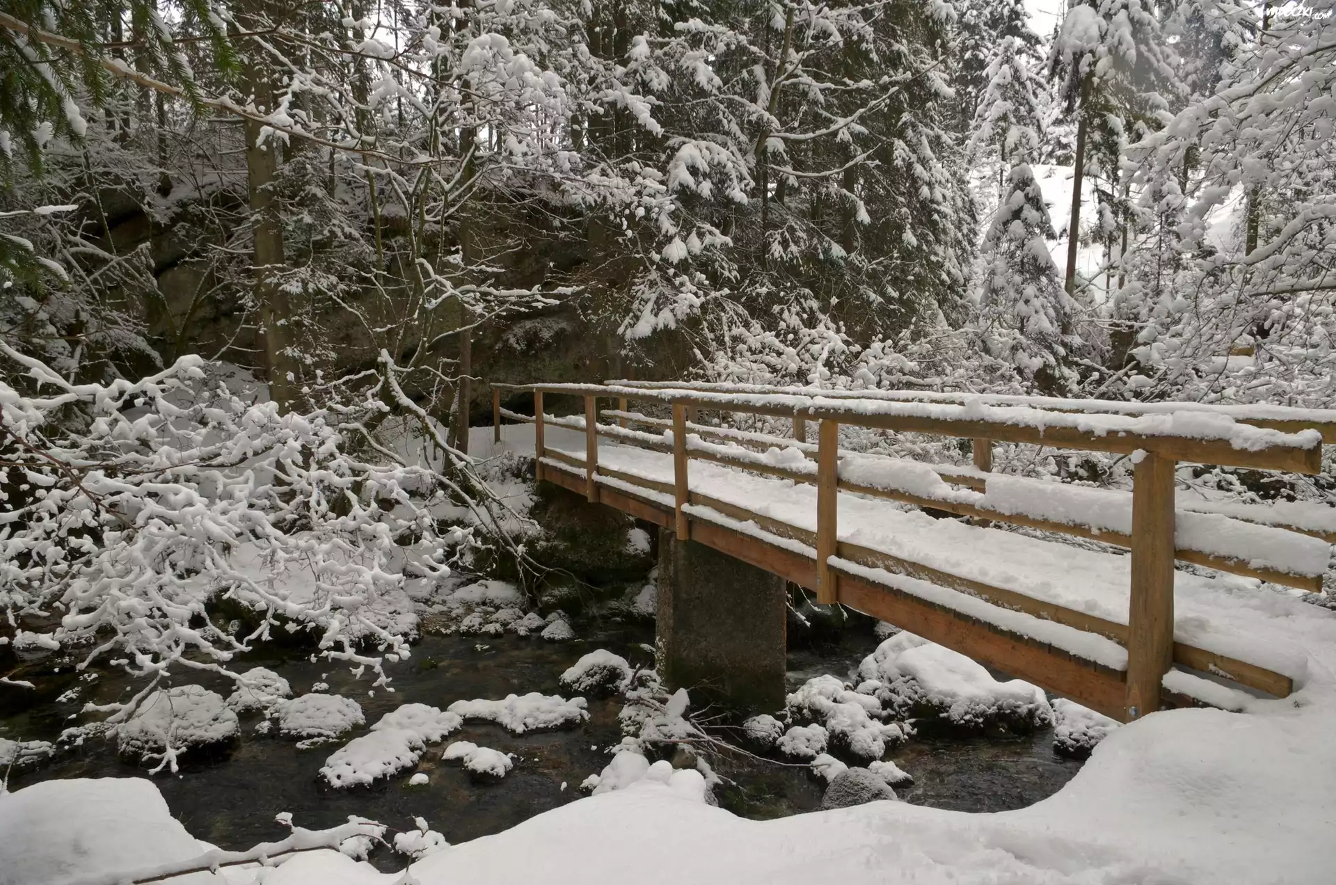 Zdj臋cia, Zima, Las, Rzeczka, Mostek
