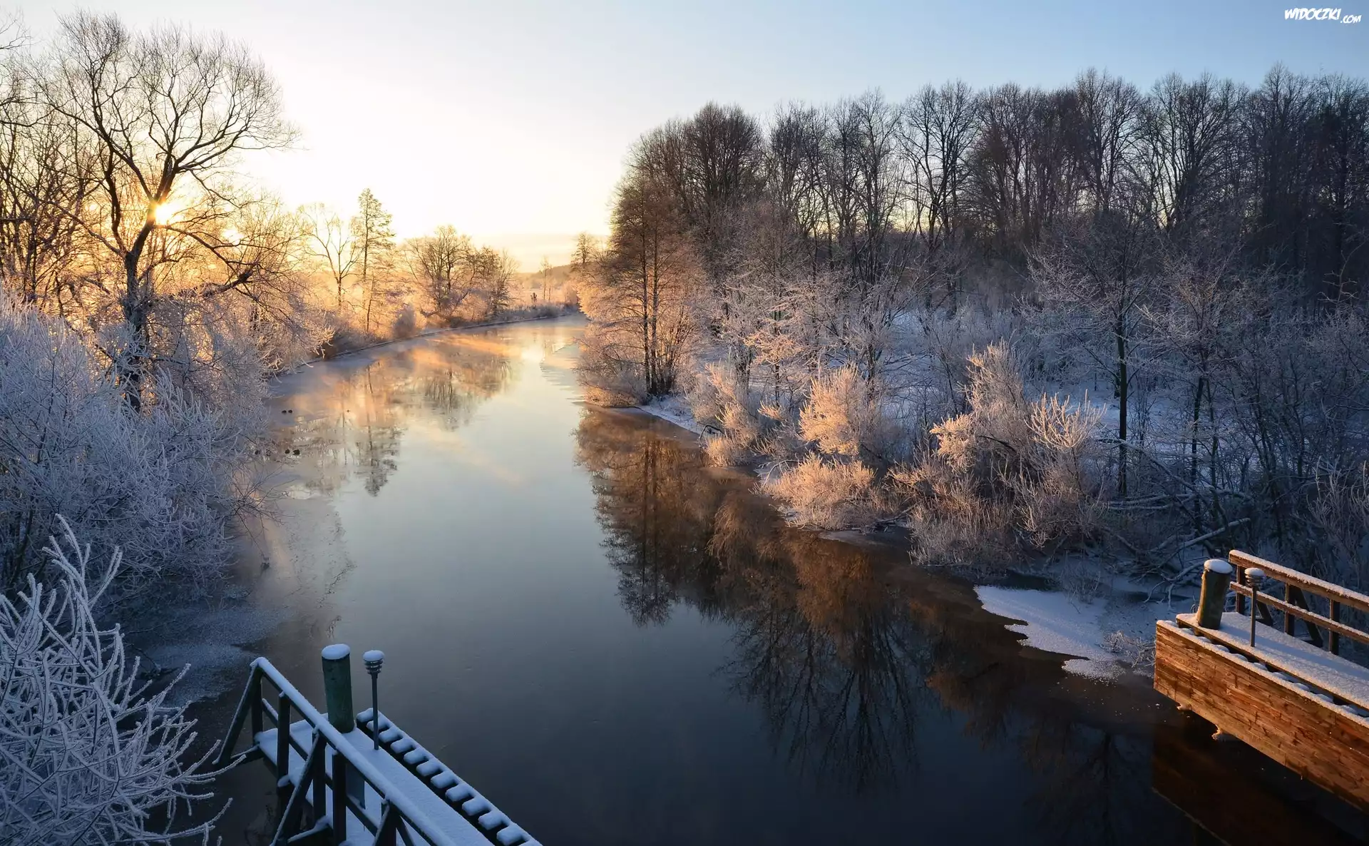 Zdjęcia, Rzeka, Zima, Drzewa