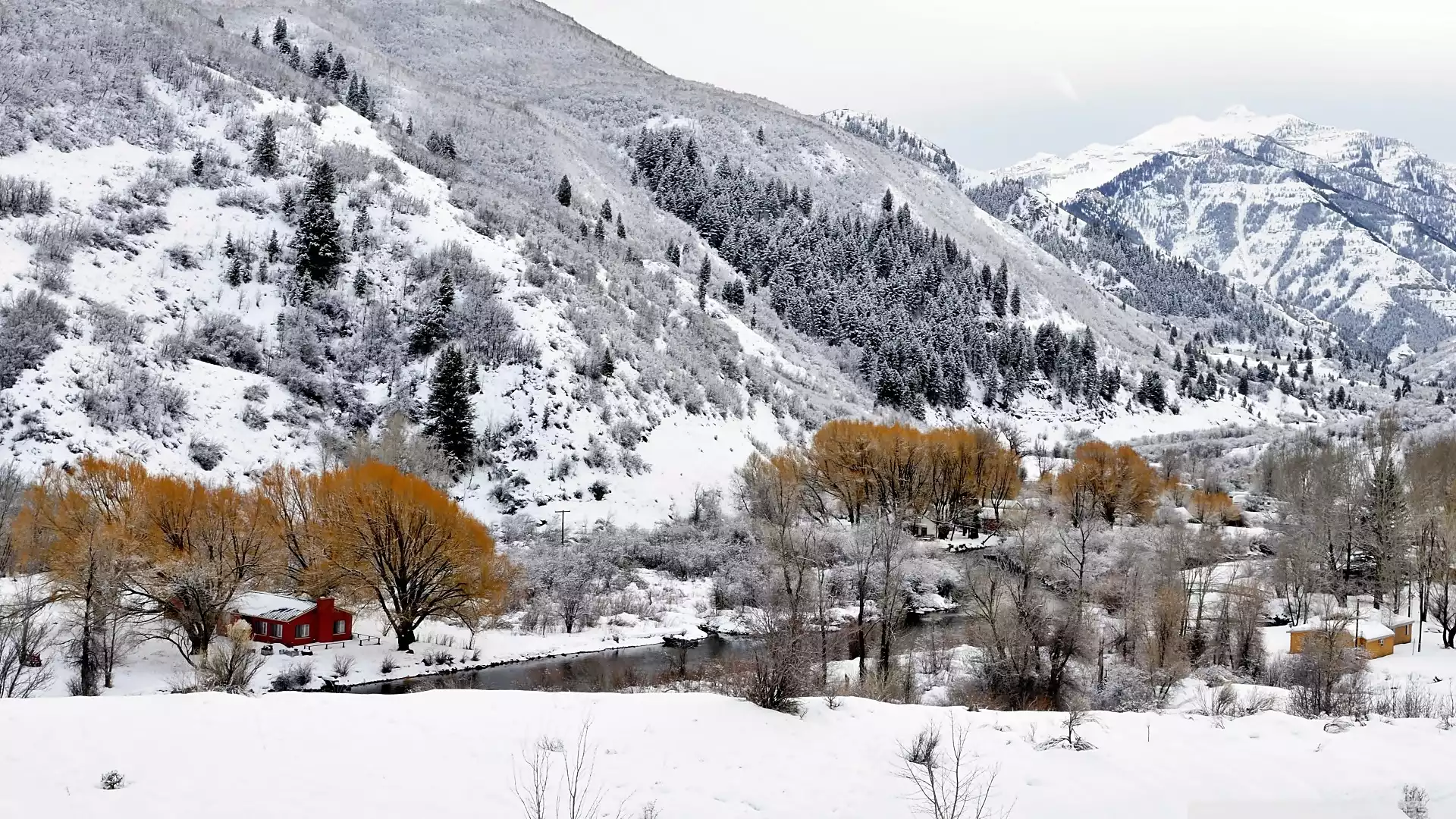 Zdjęcia, Zima, Góry, Lasy, Rzeka, Domy