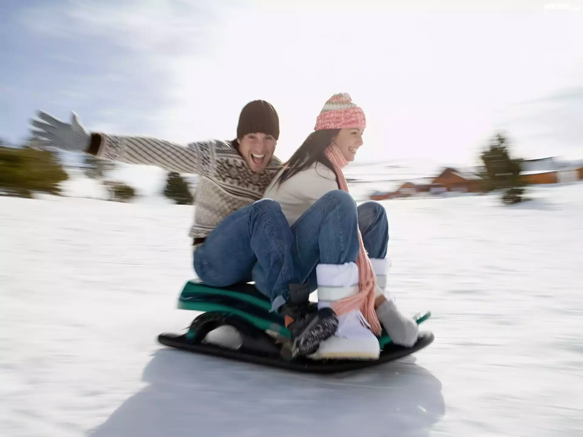 Zima, Para, Åšnieg, Saneczki, Jazda