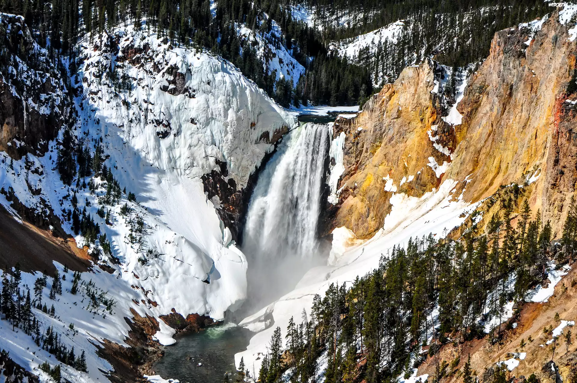 Zdjęcia, Zima, Góry, Skały, Wodospad